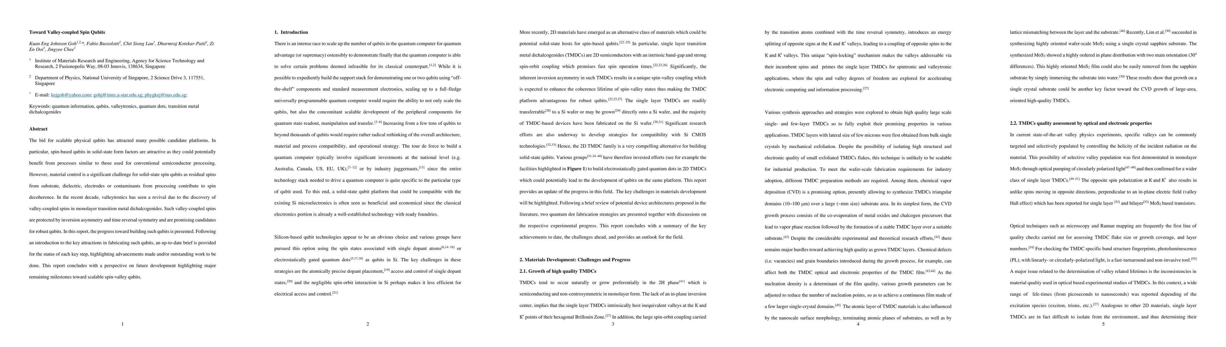 The bid for scalable physical qubits has attracted many possible candidate platforms. In particular, spin-based qubits in solid-state form factors are attractive as they could potentially benefit from processes similar to those used for conventional semiconductor processing. However, material control is a significant challenge for solid-state spin qubits as residual spins from substrate, dielectric, electrodes or contaminants from processing contribute to spin decoherence. In the recent decade, valleytronics has seen a revival due to the discovery of valley-coupled spins in monolayer transition metal dichalcogenides. Such valley-coupled spins are protected by inversion asymmetry and time-reversal symmetry and are promising candidates for robust qubits. In this report, the progress toward building such qubits is presented. Following an introduction to the key attractions in fabricating such qubits, an up-to-date brief is provided for the status of each key step, highlighting advancements made and/or outstanding work to be done. This report concludes with a perspective on future development highlighting major remaining milestones toward scalable spin-valley qubits.