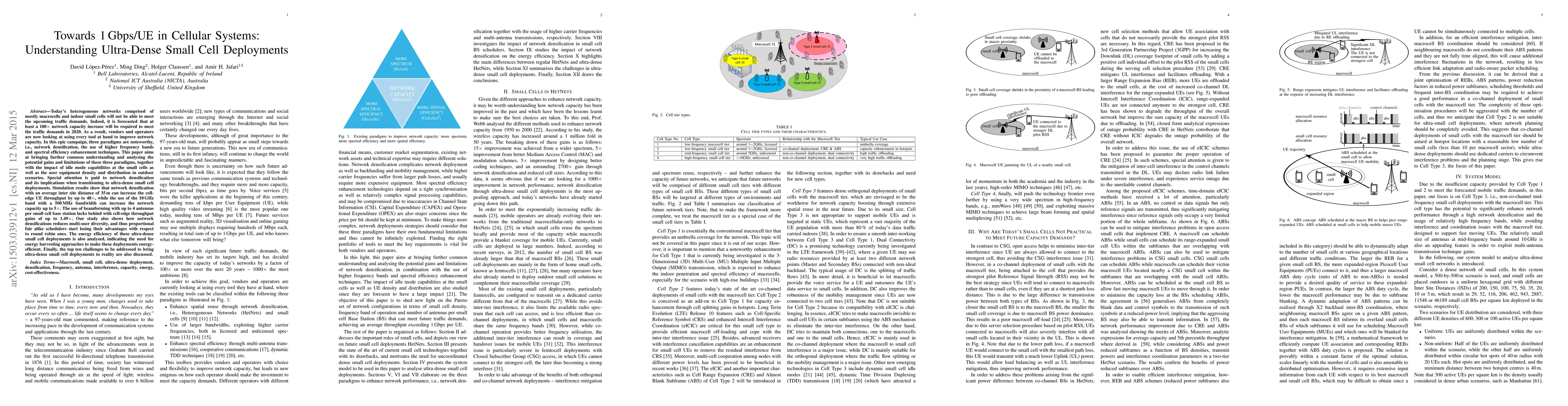 This paper investigates the potential of ultra-dense small cell deployments to achieve 1 Gbps/UE in cellular networks, highlighting significant gains from network densification and higher frequency bands, but also noting challenges like reduced multi-user diversity and energy efficiency issues.