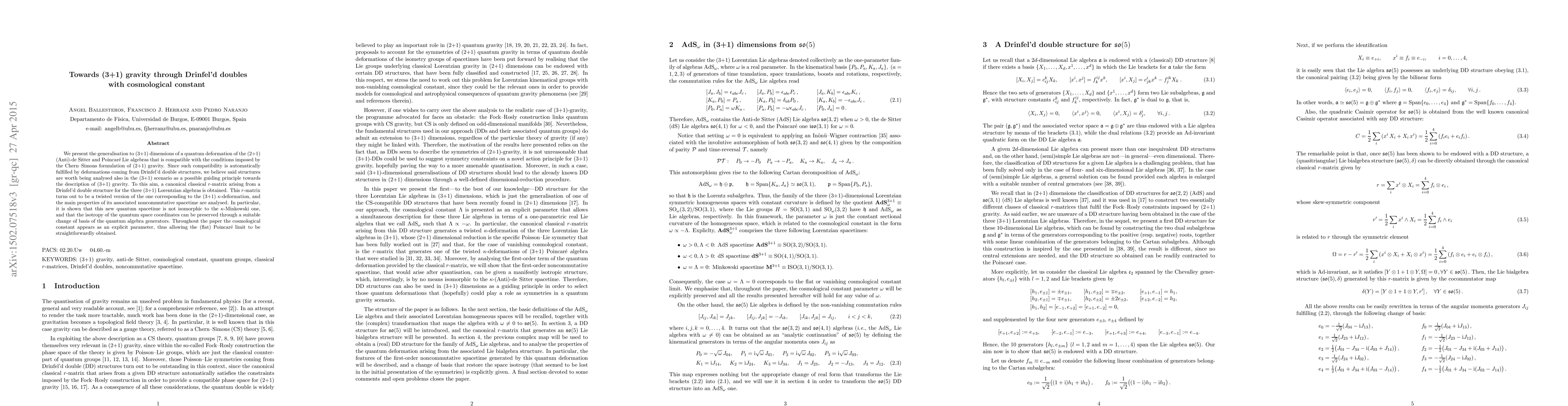 We present the generalisation to (3+1) dimensions of a quantum deformation of the (2+1) (Anti)-de Sitter and Poincar\'e Lie algebras that is compatible with the conditions imposed by the Chern-Simons formulation of (2+1) gravity. Since such compatibility is automatically fulfilled by deformations coming from Drinfel'd double structures, we believe said structures are worth being analysed also in the (3+1) scenario as a possible guiding principle towards the description of (3+1) gravity. To this aim, a canonical classical $r$-matrix arising from a Drinfel'd double structure for the three (3+1) Lorentzian algebras is obtained. This $r$-matrix turns out to be a twisted version of the one corresponding to the (3+1) $\kappa$-deformation, and the main properties of its associated noncommutative spacetime are analysed. In particular, it is shown that this new quantum spacetime is not isomorphic to the $\kappa$-Minkowski one, and that the isotropy of the quantum space coordinates can be preserved through a suitable change of basis of the quantum algebra generators. Throughout the paper the cosmological constant appears as an explicit parameter, thus allowing the (flat) Poincar\'e limit to be straightforwardly obtained.
