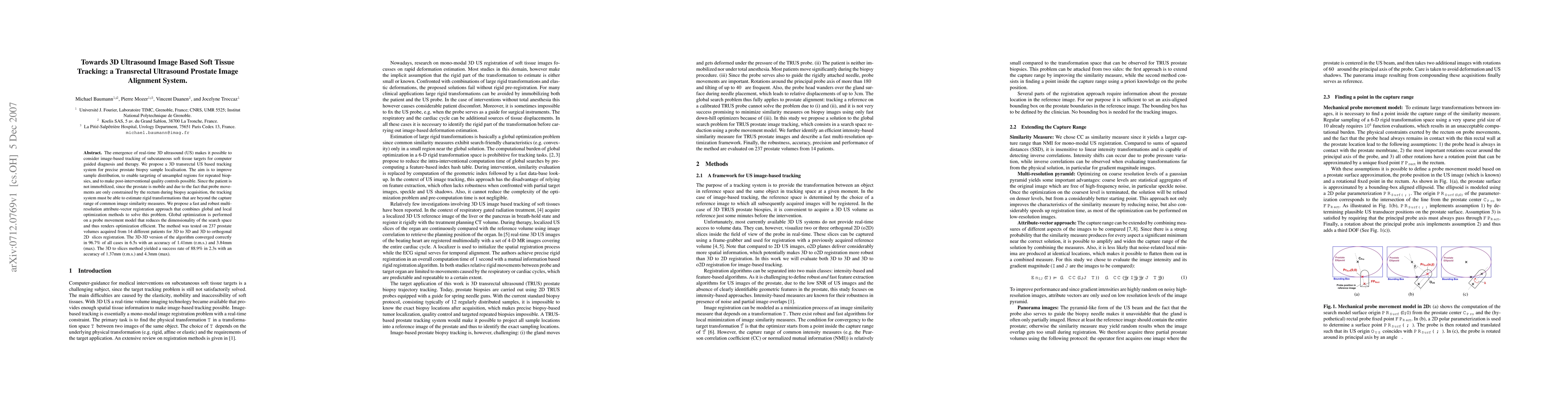 This paper proposes a 3D transrectal ultrasound tracking system for precise prostate biopsy sample localization, utilizing a fast multi-resolution attribute-vector registration approach. The method achieved 96.7% success in 3D-3D registration with 1.41mm RMS accuracy and 88.9% success in 3D to 2D slice registration with 1.37mm RMS accuracy.