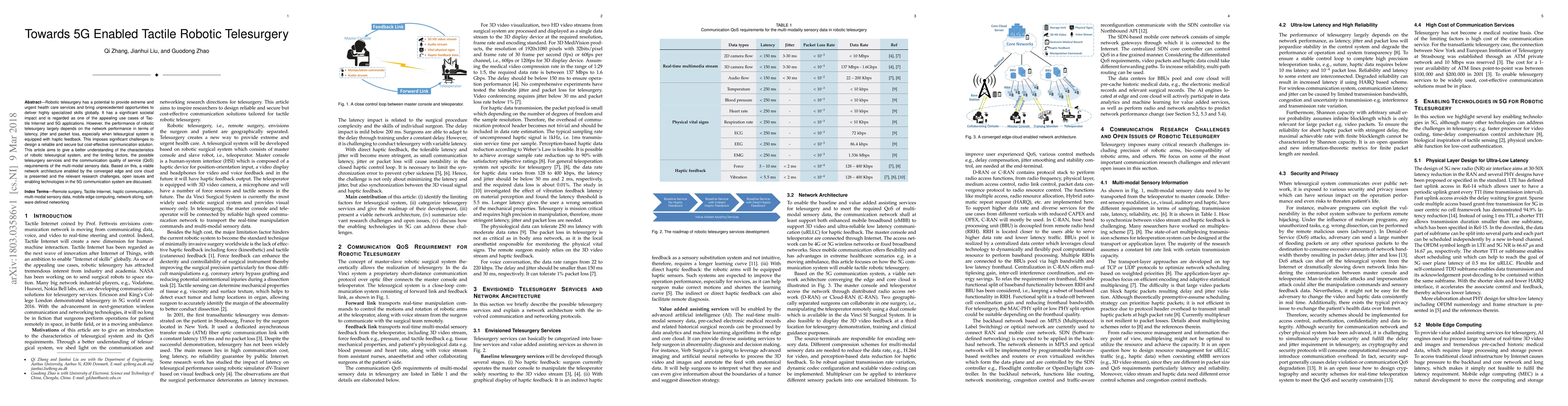 This paper explores the potential of 5G technology to enable robotic telesurgery, emphasizing the importance of low latency and high reliability for successful haptic feedback. It outlines the challenges in designing a cost-effective communication solution and proposes a network architecture leveraging edge and core cloud convergence to address these issues.