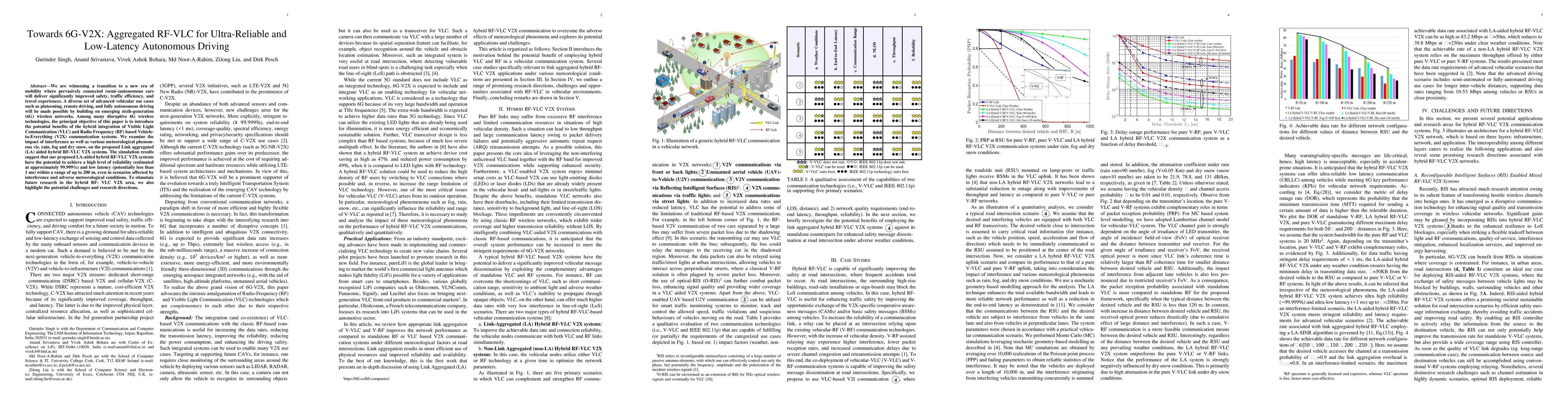 This paper explores the integration of Vehicular Visible Light Communication (V-VLC) and Vehicular Radio Frequency (V-RF) for 6G-V2X to ensure ultra-reliable and low-latency autonomous driving, even under adverse weather conditions. It demonstrates that a hybrid V-VLC/V-RF system can meet stringent reliability and latency requirements, highlighting potential challenges and future research directions.