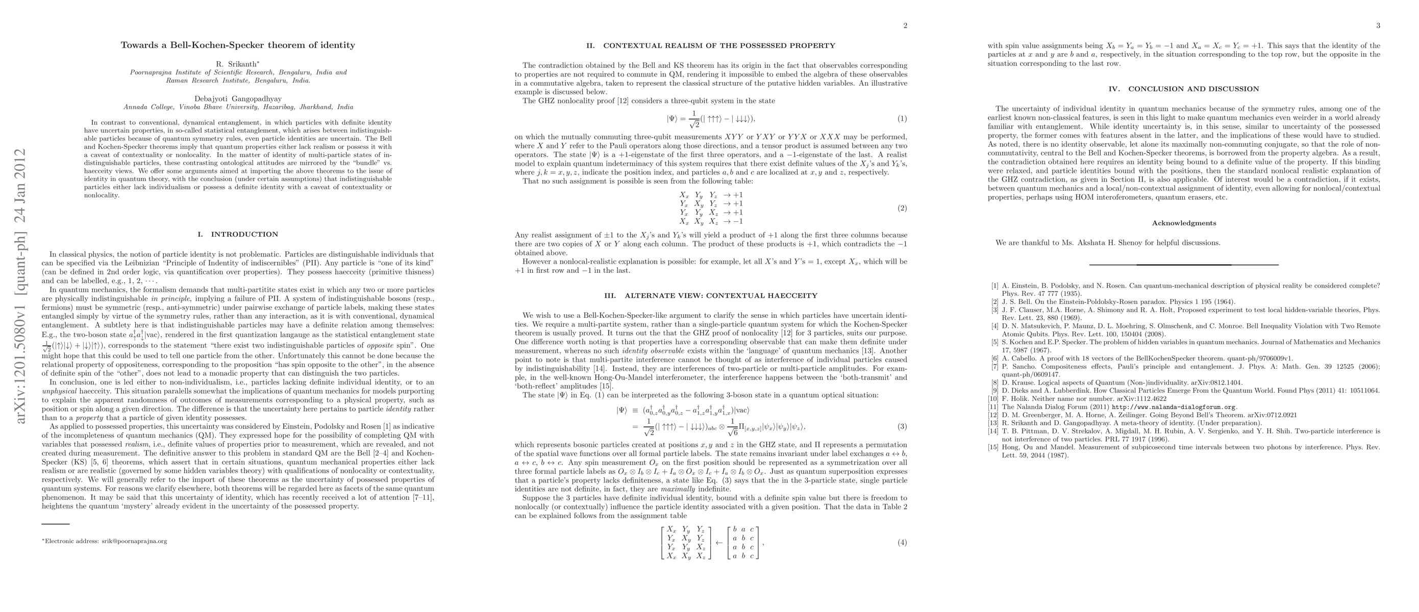 In contrast to conventional, dynamical entanglement, in which particles with definite identity have uncertain properties, in so-called statistical entanglement, which arises between indistinguishable particles because of quantum symmetry rules, even particle identities are uncertain. The Bell and Kochen-Specker theorems imply that quantum properties either lack realism or possess it with a caveat of contextuality or nonlocality. In the matter of identity of multi-particle states of indistinguishable particles, these contrasting ontological attitudes are mirrored by the "bundle" vs. haecceity views. We offer some arguments aimed at importing the above theorems to the issue of identity in quantum theory, with the conclusion (under certain assumptions) that indistinguishable particles either lack individualism or possess a definite identity with a caveat of contextuality or nonlocality.