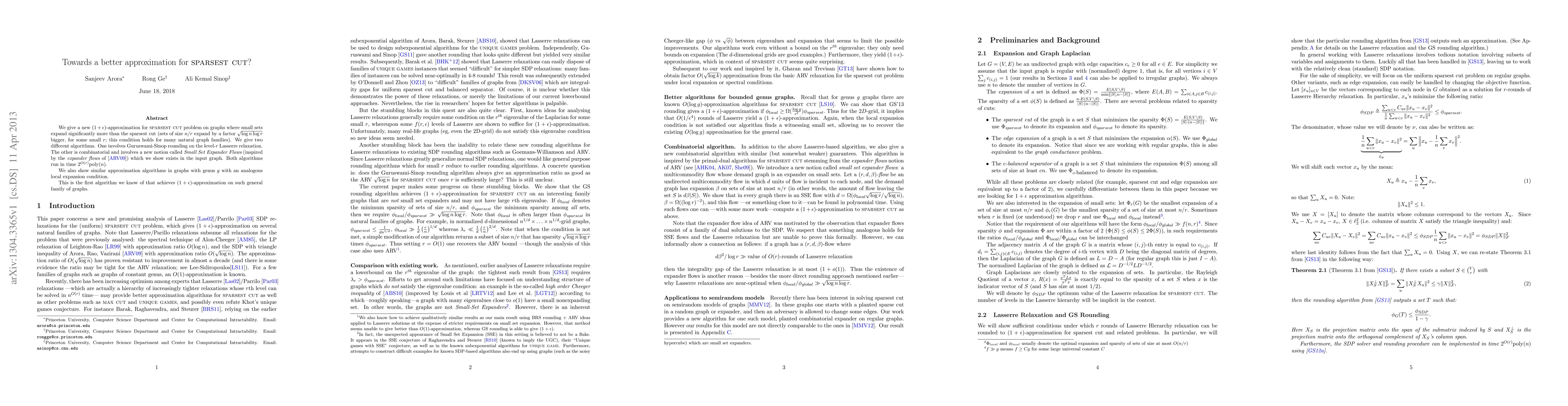 The paper introduces new algorithms for approximating the sparsest cut problem in graphs where small sets expand significantly more than the sparsest cut. These algorithms are based on Guruswami-Sinop rounding on the level-r Lasserre relaxation and a novel concept called Small Set Expander Flows (SSE Flows).