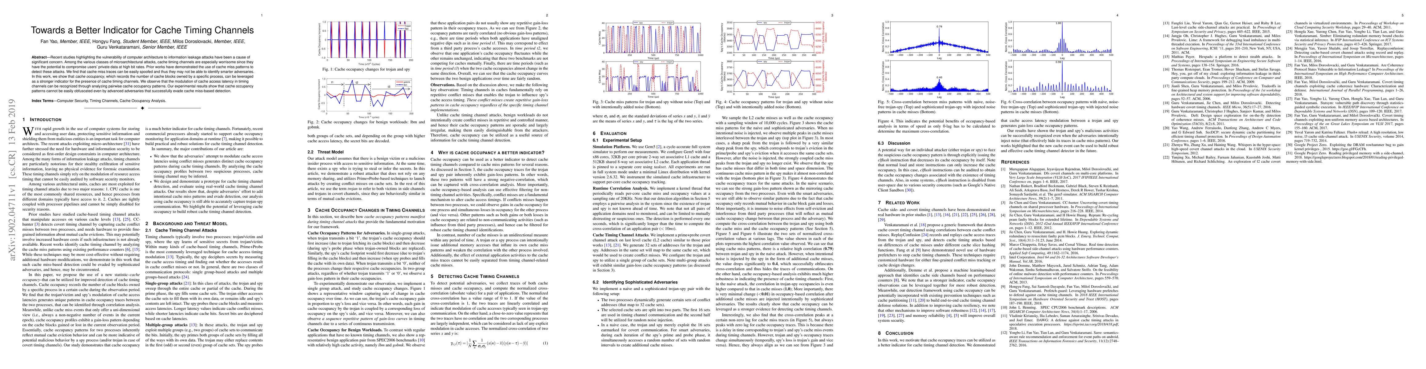 This paper proposes cache occupancy as a more reliable indicator for detecting cache timing channels compared to cache miss patterns. It demonstrates that analyzing pairwise cache occupancy patterns can reveal the modulation of cache access latency, providing a robust method against sophisticated attacks that can evade cache miss-based detection.