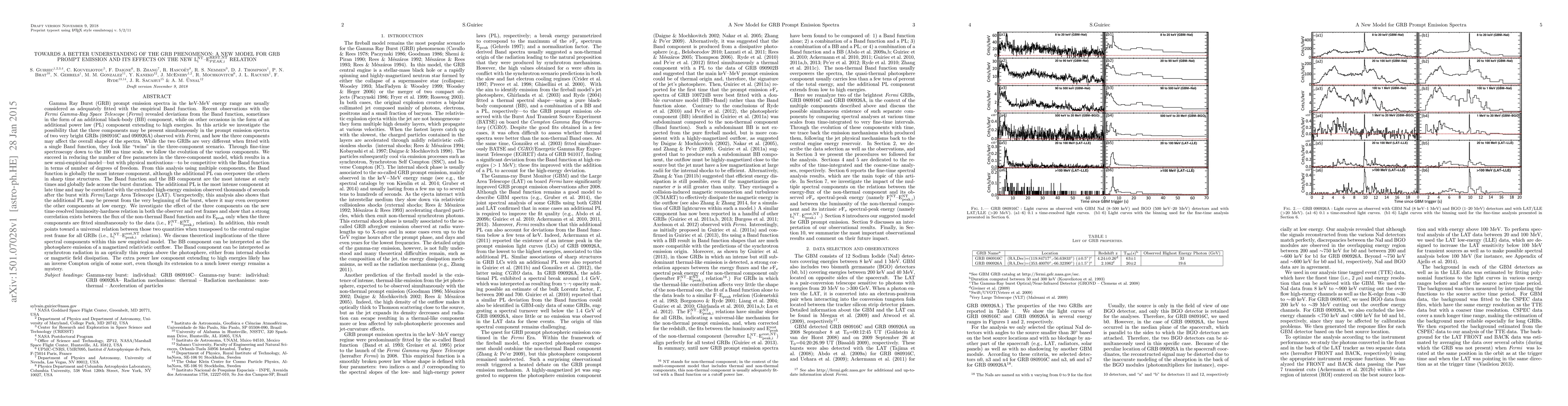 A new model for Gamma-Ray Burst (GRB) prompt emission is proposed, which combines three components: a thermal-like component, a non-thermal component, and an additional power law component. The analysis reveals that the non-thermal component is globally the most intense, and its luminosity-hardness relation shows a strong correlation with its peak energy when all components are fitted simultaneously.