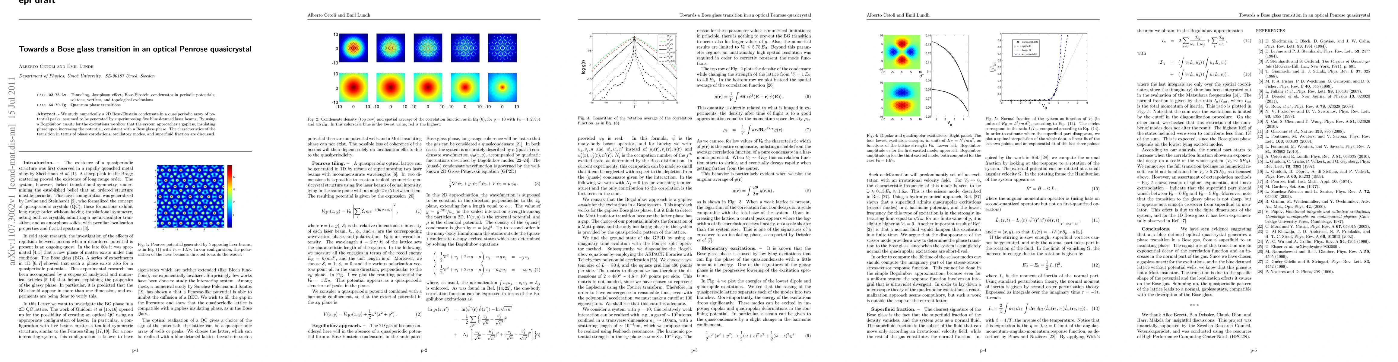This paper numerically investigates a 2D Bose-Einstein condensate in a quasiperiodic optical lattice, demonstrating the emergence of a Bose glass phase characterized by a gapless, insulating state as the potential increases. The study discusses the transition's features, including phase correlations, oscillatory modes, and superfluid fraction.