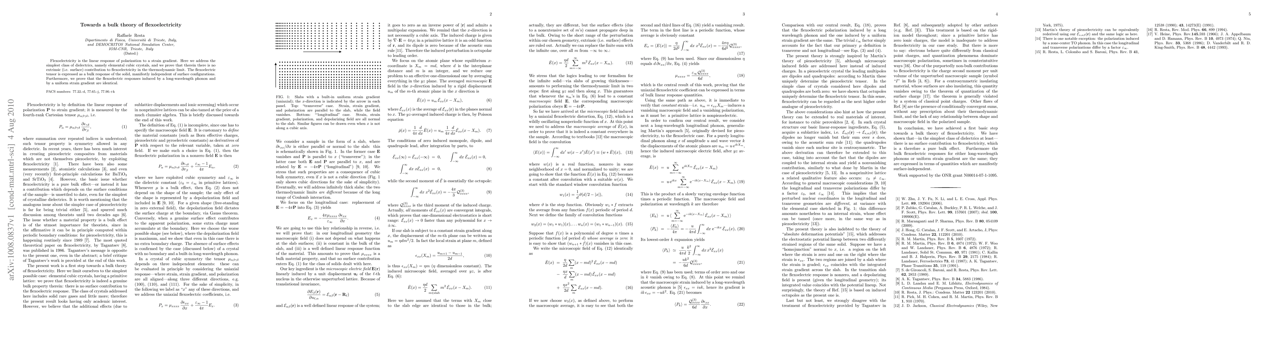 The main technical or theoretical contribution is the development of a bulk theory of flexoelectricity that shows no surface contribution to this effect.