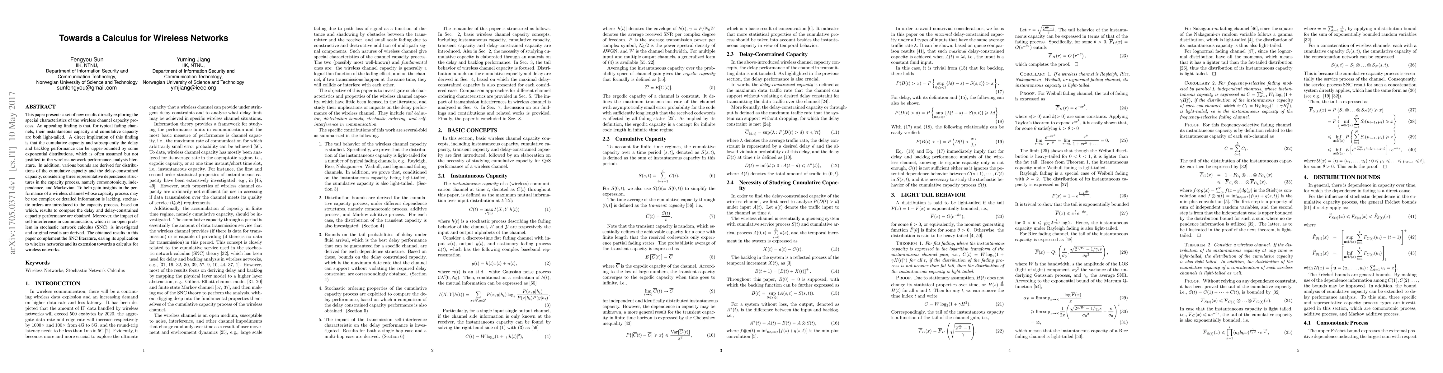 This paper develops a calculus for wireless networks by exploring the characteristics of wireless channel capacity, showing that it can be upper-bounded by exponential distributions. It also investigates self-interference and introduces stochastic orders to compare performance under various capacity process dependencies.