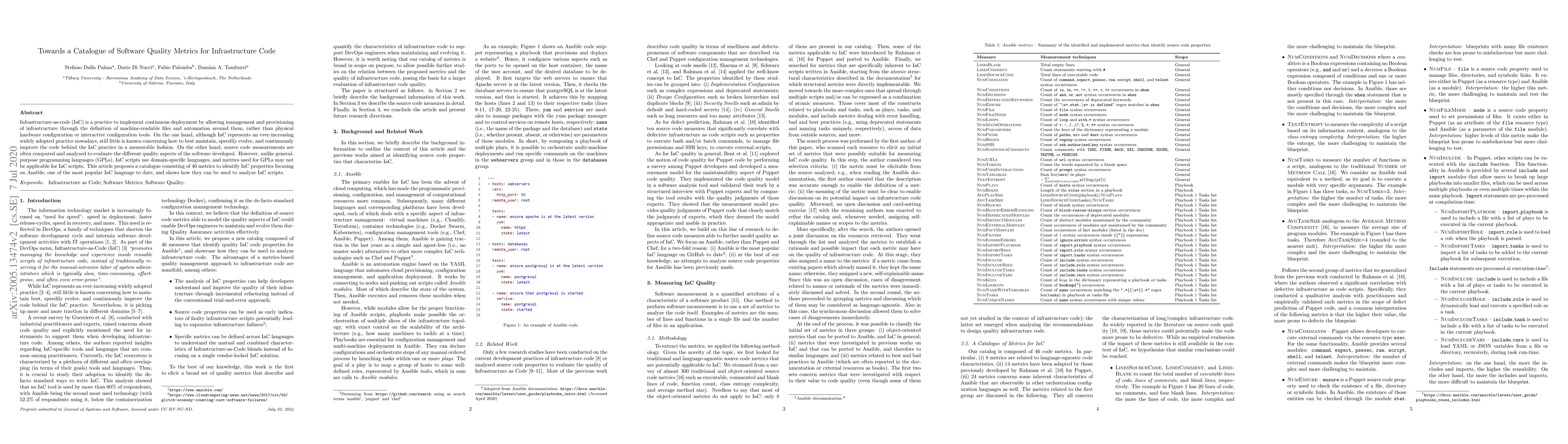 This paper proposes a catalogue of 46 software quality metrics tailored for Infrastructure-as-Code (IaC) scripts, specifically focusing on Ansible. It addresses the lack of metrics for evaluating IaC practices and demonstrates their application in analyzing IaC code quality.