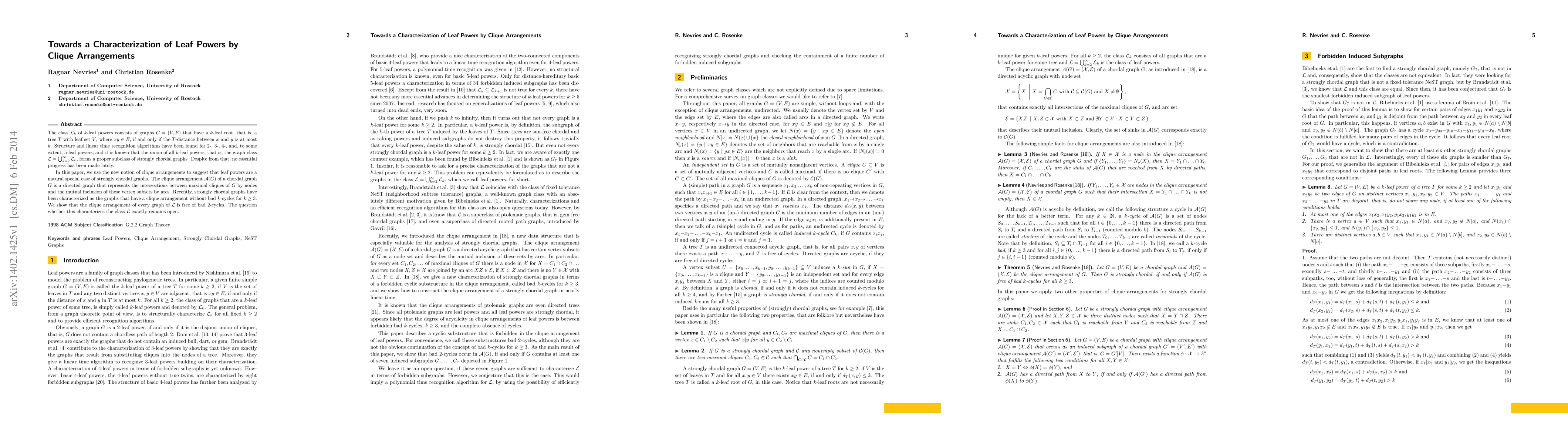 Researchers show that leaf powers can be characterized using clique arrangements without bad 2-cycles, suggesting a connection to strongly chordal graphs.