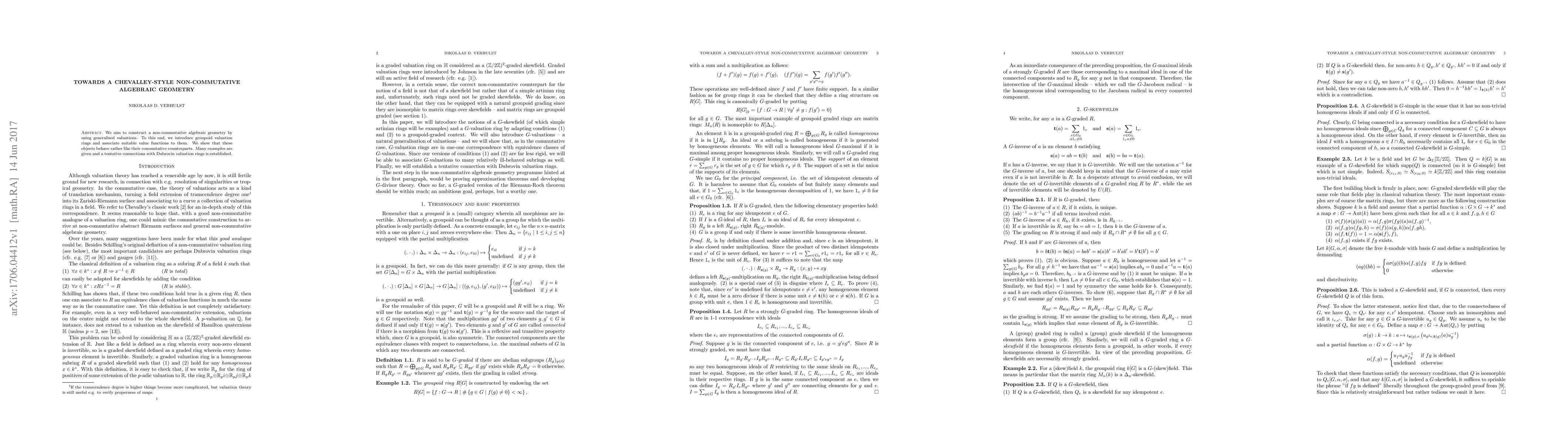 Researchers aim to build a non-commutative algebraic geometry using generalized valuations, introducing groupoid valuation rings that behave similarly to their commutative counterparts, with potential connections to Dubrovin valuation rings.