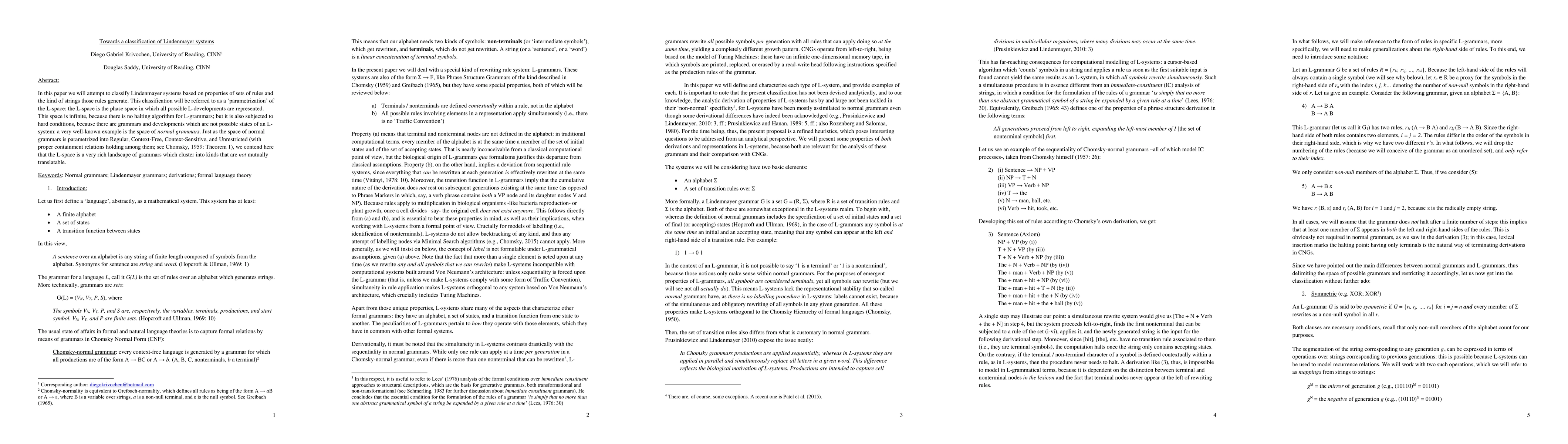 In this paper we will attempt to classify Lindenmayer systems based on properties of sets of rules and the kind of strings those rules generate. This classification will be referred to as a parametrization of the L-space: the L-space is the phase space in which all possible L-developments are represented. This space is infinite, because there is no halting algorithm for L-grammars; but it is also subjected to hard conditions, because there are grammars and developments which are not possible states of an L-system: a very well-known example is the space of normal grammars. Just as the space of normal grammars is parametrized into Regular, Context-Free, Context-Sensitive, and Unrestricted (with proper containment relations holding among them; see Chomsky, 1959: Theorem 1), we contend here that the L-space is a very rich landscape of grammars which cluster into kinds that are not mutually translatable.