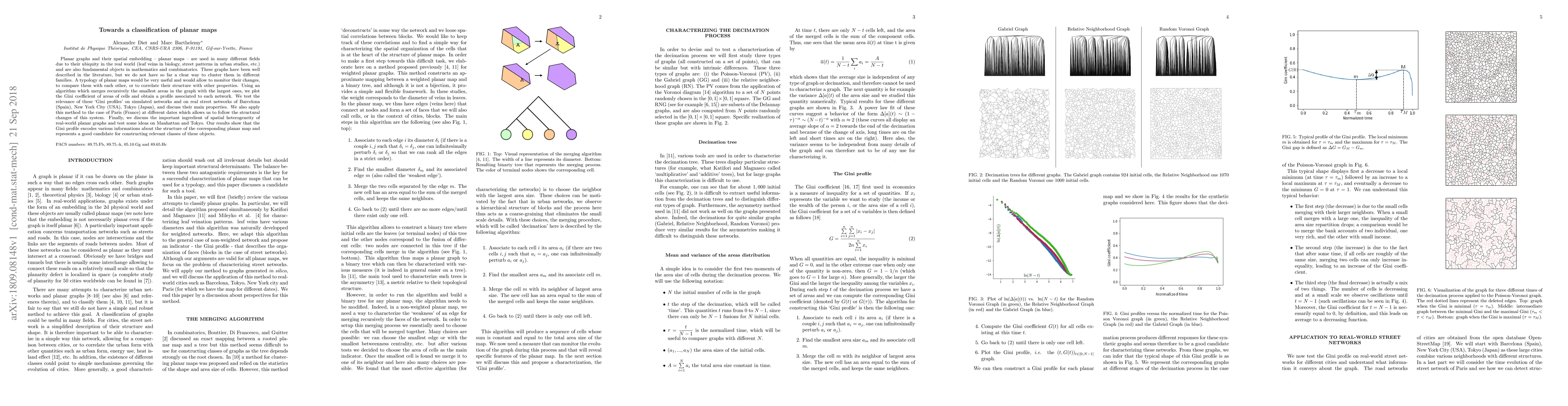 Planar graphs and their spatial embedding -- planar maps -- are used in many different fields due to their ubiquity in the real world (leaf veins in biology, street patterns in urban studies, etc.) and are also fundamental objects in mathematics and combinatorics. These graphs have been well described in the literature, but we do not have so far a clear way to cluster them in different families. A typology of planar maps would be very useful and would allow to monitor their changes, to compare them with each other, or to correlate their structure with other properties. Using an algorithm which merges recursively the smallest areas in the graph with the largest ones, we plot the Gini coefficient of areas of cells and obtain a profile associated to each network. We test the relevance of these `Gini profiles' on simulated networks and on real street networks of Barcelona (Spain), New York City (USA), Tokyo (Japan), and discuss their main properties. We also apply this method to the case of Paris (France) at different dates which allows us to follow the structural changes of this system. Finally, we discuss the important ingredient of spatial heterogeneity of real-world planar graphs and test some ideas on Manhattan and Tokyo. Our results show that the Gini profile encodes various informations about the structure of the corresponding planar map and represents a good candidate for constructing relevant classes of these objects.
