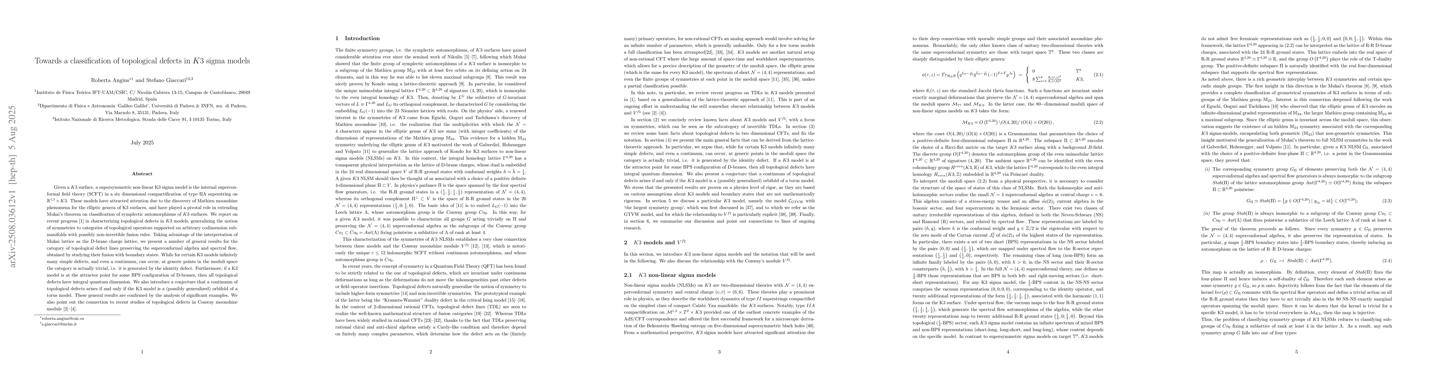 Given a $K3$ surface, a supersymmetric non-linear K3 sigma model is the internal superconformal field theory (SCFT) in a six dimensional compactification of type IIA superstring on $\mathbb{R}^{1,5} \times K3$. These models have attracted attention due to the discovery of Mathieu moonshine phenomena for the elliptic genera of K3 surfaces, and have played a pivotal role in extending Mukai's theorem on classification of symplectic automorphisms of $K3$ surfaces. We report on recent progress (arXiv:2402.08719 [hep-th]) in characterizing topological defects in $K3$ models, generalizing the notion of symmetries to categories of topological operators supported on arbitrary codimension submanifolds with possibly non-invertible fusion rules. Taking advantage of the interpretation of Mukai lattice as the D-brane charge lattice, we present a number of general results for the category of topological defect lines preserving the superconformal algebra and spectral flow, obtained by studying their fusion with boundary states. While for certain K3 models infinitely many simple defects, and even a continuum, can occur, at generic points in the moduli space the category is actually trivial, i.e. it is generated by the identity defect. Furthermore, if a K3 model is at the attractor point for some BPS configuration of D-branes, then all topological defects have integral quantum dimension. We also introduce a conjecture that a continuum of topological defects arises if and only if the K3 model is a (possibly generalized) orbifold of a torus model. These general results are confirmed by the analysis of significant examples. We also point out the connection to recent studies of topological defects in the Conway moonshine module theory (arXiv:2412.21141 [hep-th],arXiv:2504.18619 [hep-th]).