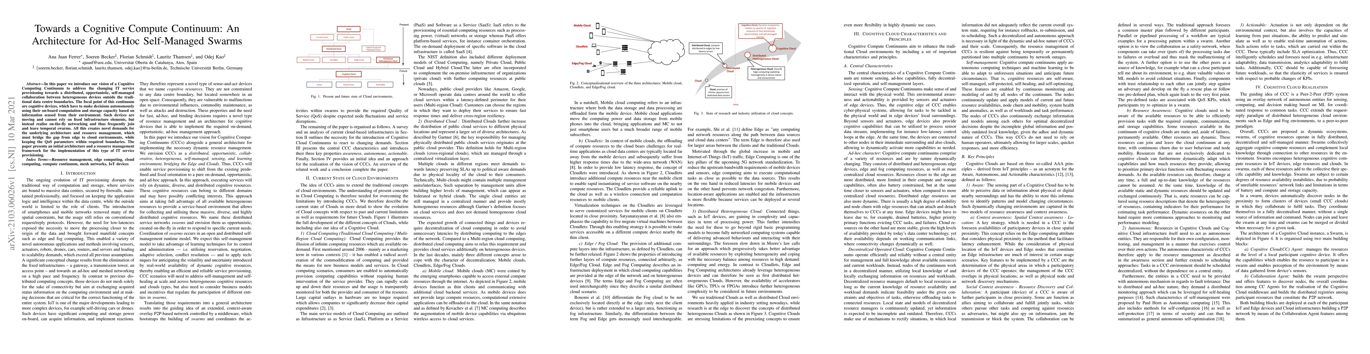Researchers propose a Cognitive Computing Continuum to enable self-managed swarms of heterogeneous devices, addressing changing IT service provisioning needs. They present an initial architecture and resource management framework for this type of IT service provision.