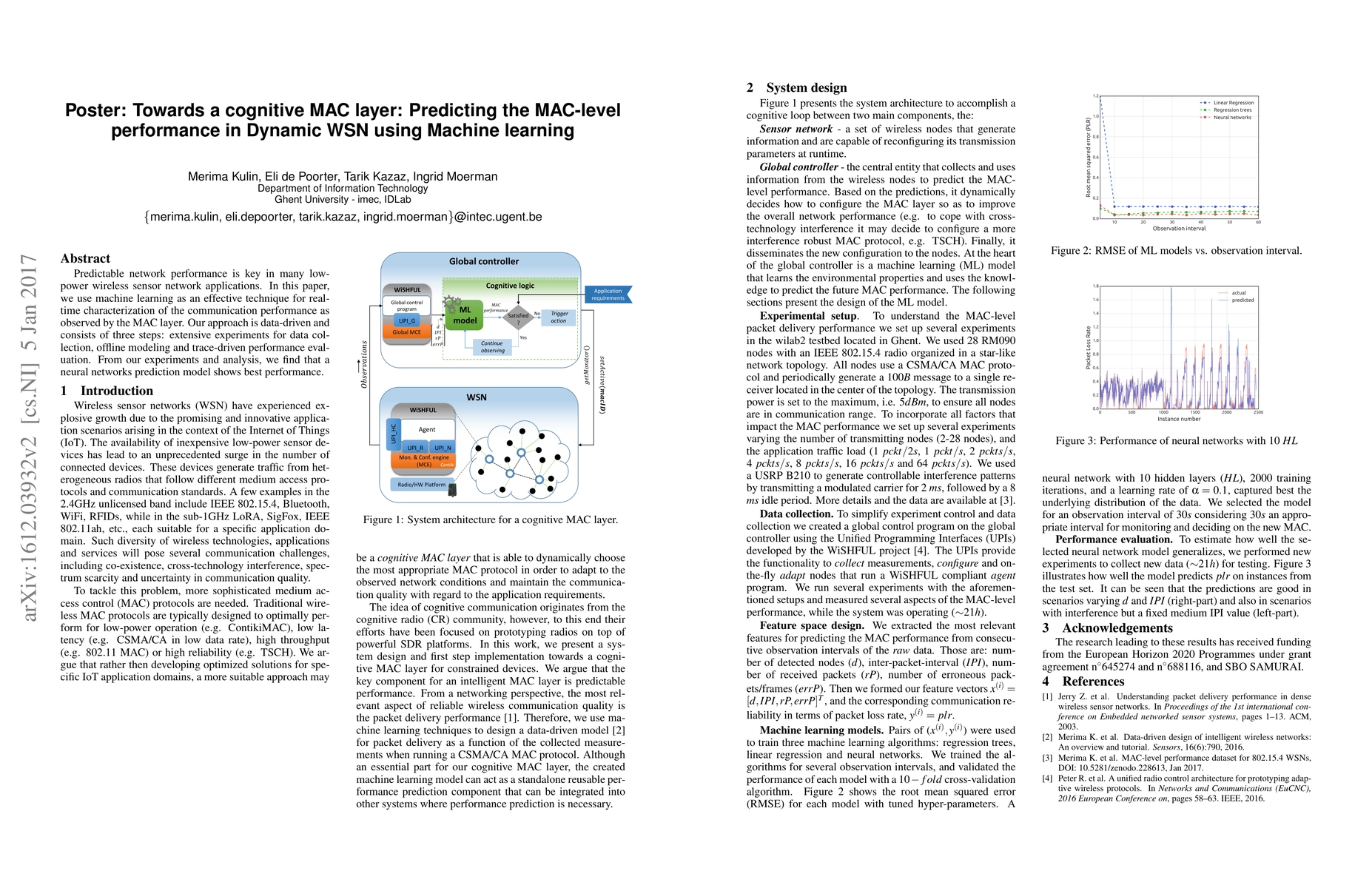 This paper employs machine learning to predict MAC-layer performance in dynamic wireless sensor networks. A neural network model, derived from extensive data collection, offline modeling, and trace-driven evaluation, demonstrates superior performance prediction capabilities.