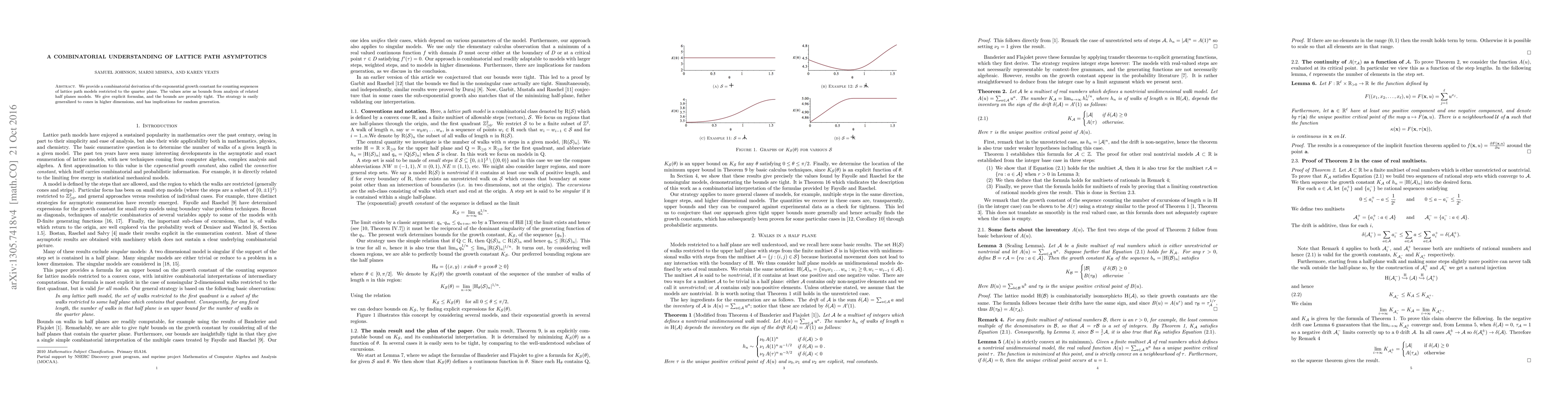 We provide a new strategy to compute the exponential growth constant of enumeration sequences counting walks in lattice path models restricted to the quarter plane. The bounds arise by comparison with half-planes models. In many cases the bounds are provably tight, and provide a combinatorial interpretation of recent formulas of Fayolle and Raschel (2012) and Bostan, Raschel and Salvy (2013). We discuss how to generalize to higher dimensions.