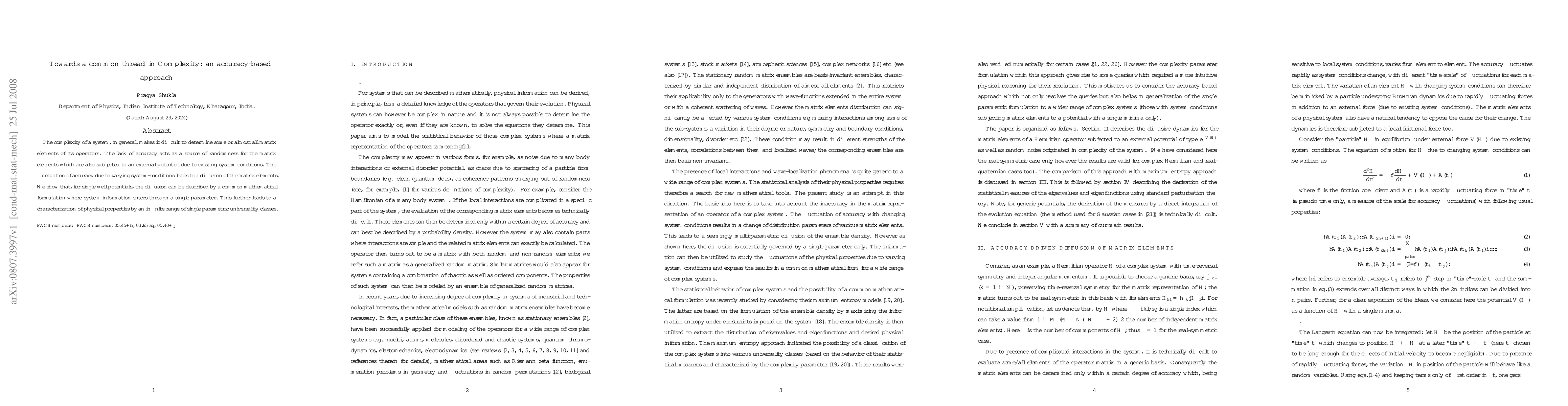 The complexity of a system, in general, makes it difficult to determine some or almost all matrix elements of its operators. The lack of accuracy acts as a source of randomness for the matrix elements which are also subjected to an external potential due to existing system conditions. The fluctuation of accuracy due to varying system-conditions leads to a diffusion of the matrix elements. We show that, for the single well potentials, the diffusion can be described by a common mathematical formulation where system information enters through a single parameter. This further leads to a characterization of physical properties by an infinite range of single parametric universality classes.