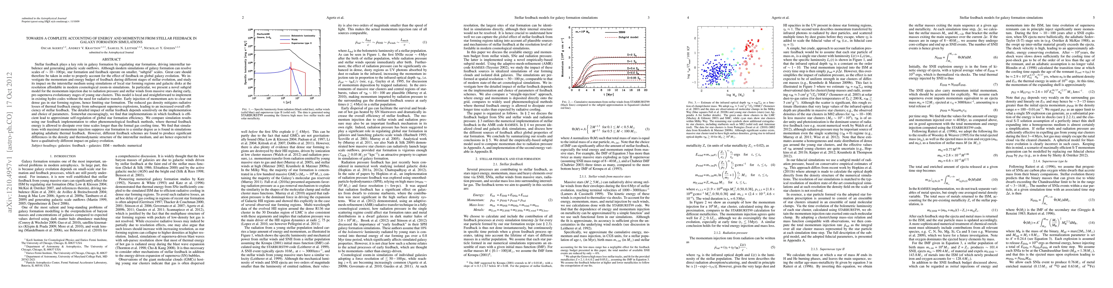 This paper investigates the energy and momentum contributions from stellar feedback in galaxy formation simulations, focusing on subgrid models for momentum injection from massive stars. It finds that early momentum injection can limit star formation and enhance feedback efficiency, leading to a self-regulated star formation rate, and suggests that maximal momentum injection can suppress star formation similarly to thermal feedback mechanisms.
