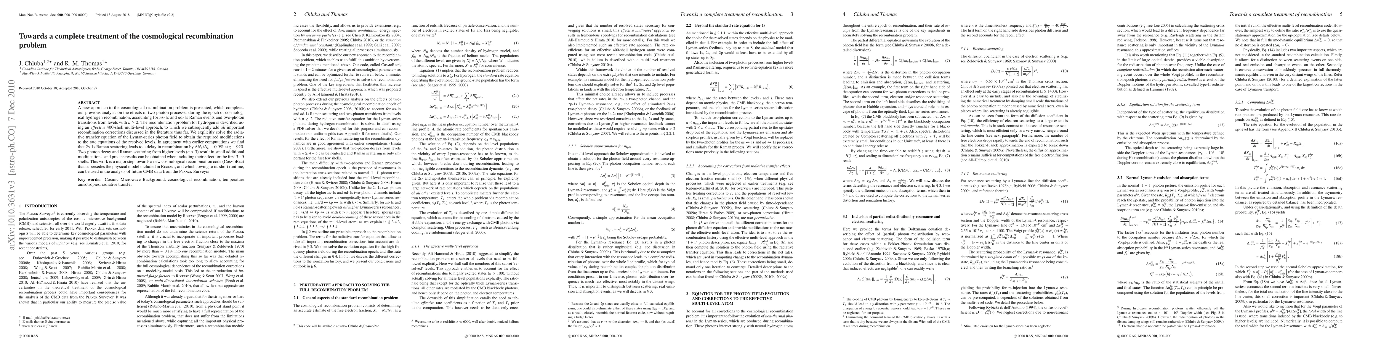 This paper presents a comprehensive new approach to the cosmological recombination problem, incorporating two-photon processes and Raman events to refine hydrogen recombination models. The study employs an effective multi-level method and solves the radiative transfer equation to provide precise modifications to rate equations, aiming to develop a new cosmological recombination code, CosmoRec, for future CMB data analysis.