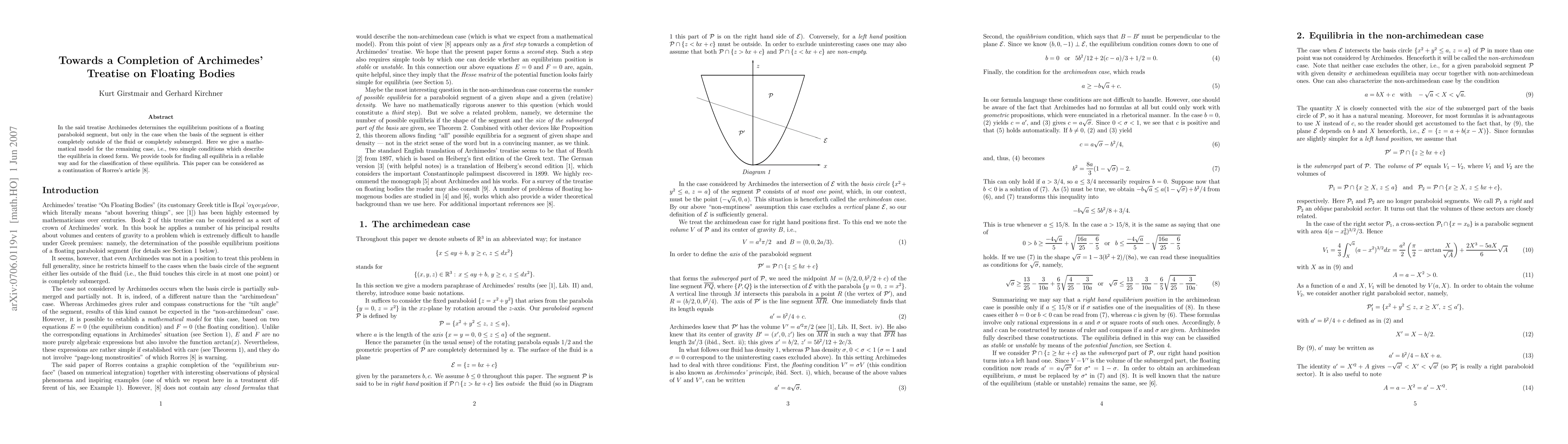 Researchers have developed a mathematical model to find equilibrium positions of floating paraboloid segments partially submerged in fluid, extending on Archimedes' treatise.
