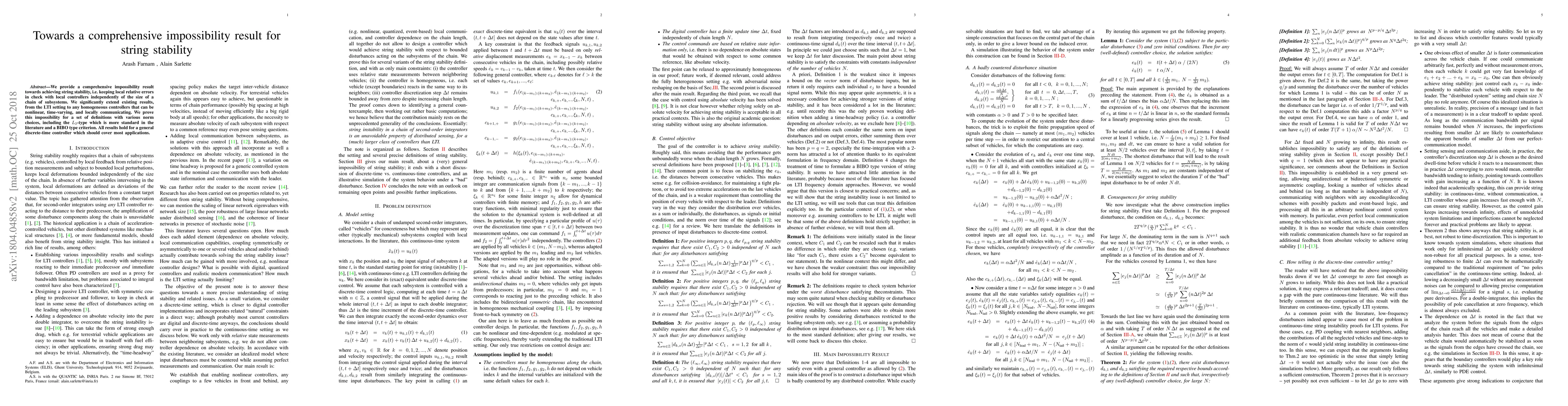 We provide a comprehensive impossibility result towards achieving string stability, i.e. keeping local relative errors in check with local controllers independently of the size of a chain of subsystems. We significantly extend existing results, from the LTI setting to any homogeneous controllers that can be nonlinear, time-varying, and locally communicating. We prove this impossibility for a set of definitions with various norm choices, including the $L_2$-type which is more standard in the literature and a BIBO type criterion. All results hold for a general discrete-time controller which should cover most applications.