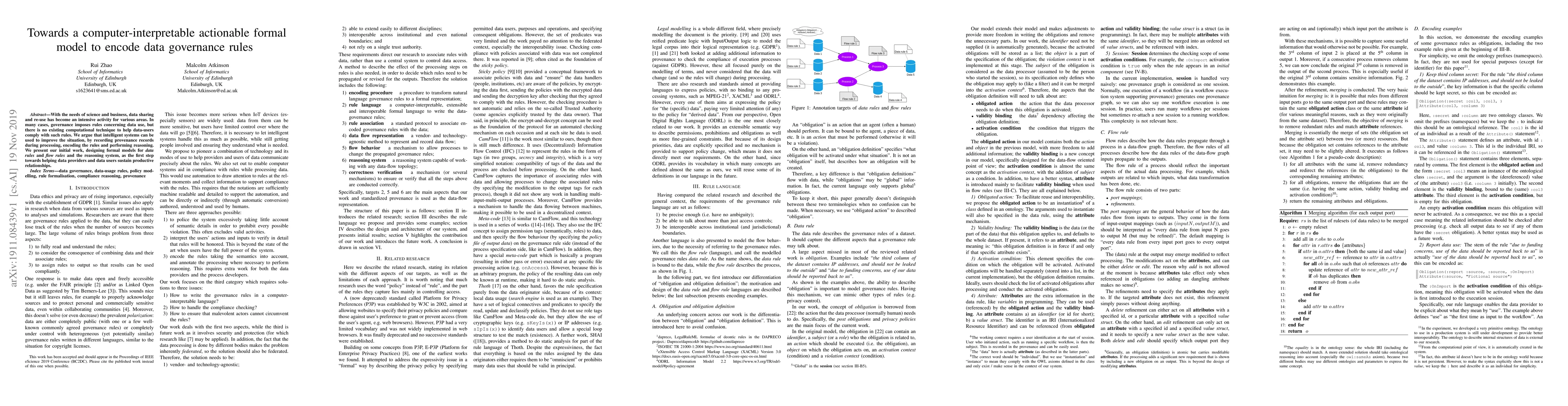 With the needs of science and business, data sharing and re-use has become an intensive activity for various areas. In many cases, governance imposes rules concerning data use, but there is no existing computational technique to help data-users comply with such rules. We argue that intelligent systems can be used to improve the situation, by recording provenance records during processing, encoding the rules and performing reasoning. We present our initial work, designing formal models for data rules and flow rules and the reasoning system, as the first step towards helping data providers and data users sustain productive relationships.