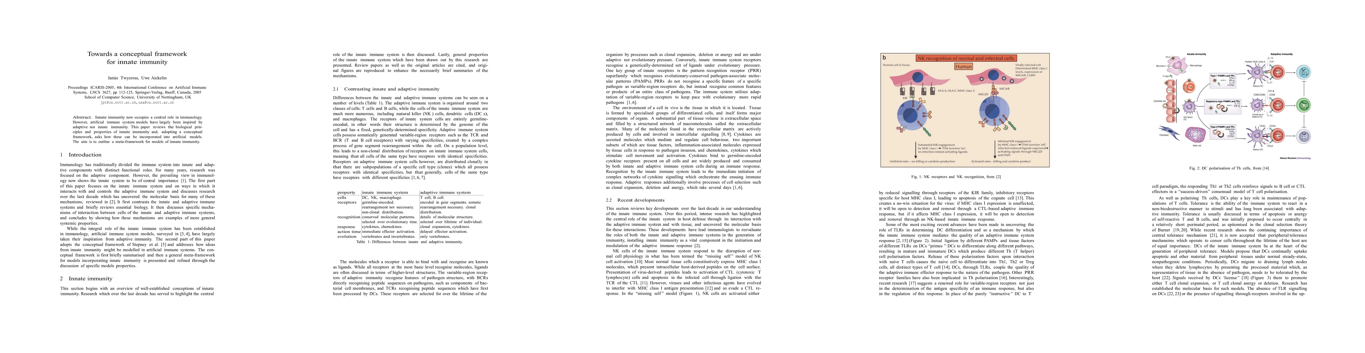 This paper reviews the biological principles of innate immunity and proposes a conceptual framework to integrate these principles into artificial immune system models, aiming to develop a meta-framework for innate immunity.