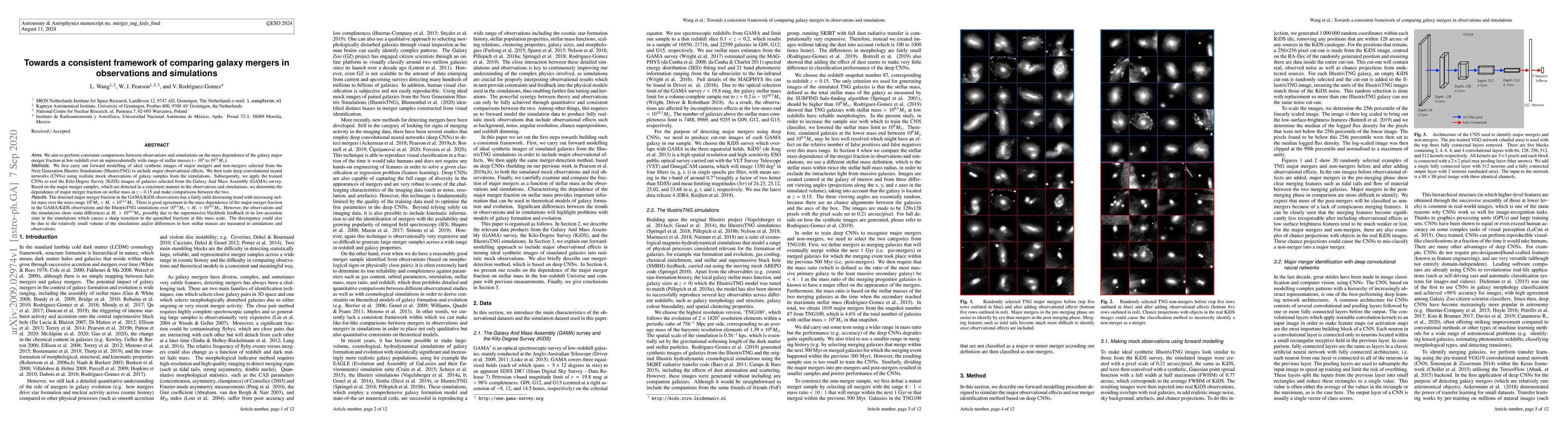 Aims. We aim to perform consistent comparisons between observations and simulations on the mass dependence of the galaxy major merger fraction at low redshift over an unprecedentedly wide range of stellar masses (10^9 to 10^12 solar masses). Methods. We first carry out forward modelling of ideal synthetic images of major mergers and non-mergers selected from the Next Generation Illustris Simulations (IllustrisTNG) to include major observational effects. We then train deep convolutional neural networks (CNNs) using realistic mock observations of galaxy samples from the simulations. Subsequently, we apply the trained CNNs to real the Kilo-Degree Survey (KiDS) images of galaxies selected from the Galaxy And Mass Assembly (GAMA) survey. Based on the major merger samples, which are detected in a consistent manner in the observations and simulations, we determine the dependence of major merger fraction on stellar mass at z around 0.15 and make comparisons between the two. Results. The detected major merger fraction in the GAMA/KiDS observations has a fairly mild decreasing trend with increasing stellar mass over the mass range 10^9 < M_sun < M_star < 10^11.5 M_sun. There is good agreement in the mass dependence of the major merger fraction in the GAMA/KiDS observations and the IllustrisTNG simulations over 10^9.5 M_sun < M_star < 10^10.5 M_sun. However, the observations and the simulations show some differences at M_star > 10^10.5M_sun, possibly due to the supermassive blackhole feedback in its low-accretion state in the simulations which causes a sharp transition in the quenched fractions at this mass scale. The discrepancy could also be due to the relatively small volume of the simulations and/or differences in how stellar masses are measured in simulations and observations.