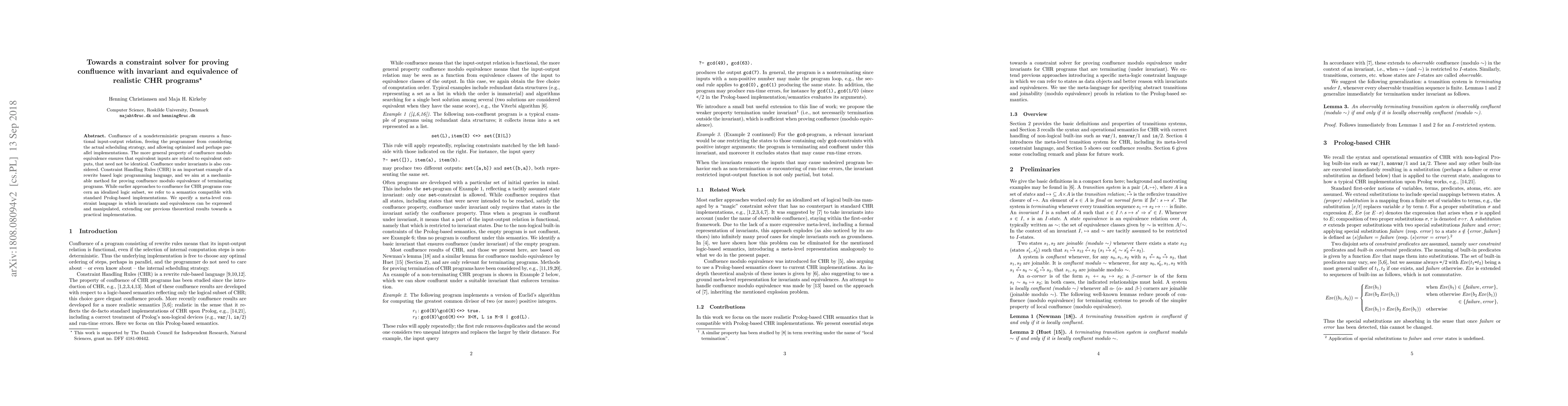 This research develops a constraint solver to prove confluence modulo equivalence for realistic Constraint Handling Rules (CHR) programs, focusing on a practical implementation compatible with standard Prolog-based semantics, and extends previous theoretical results to handle terminating programs with invariants.