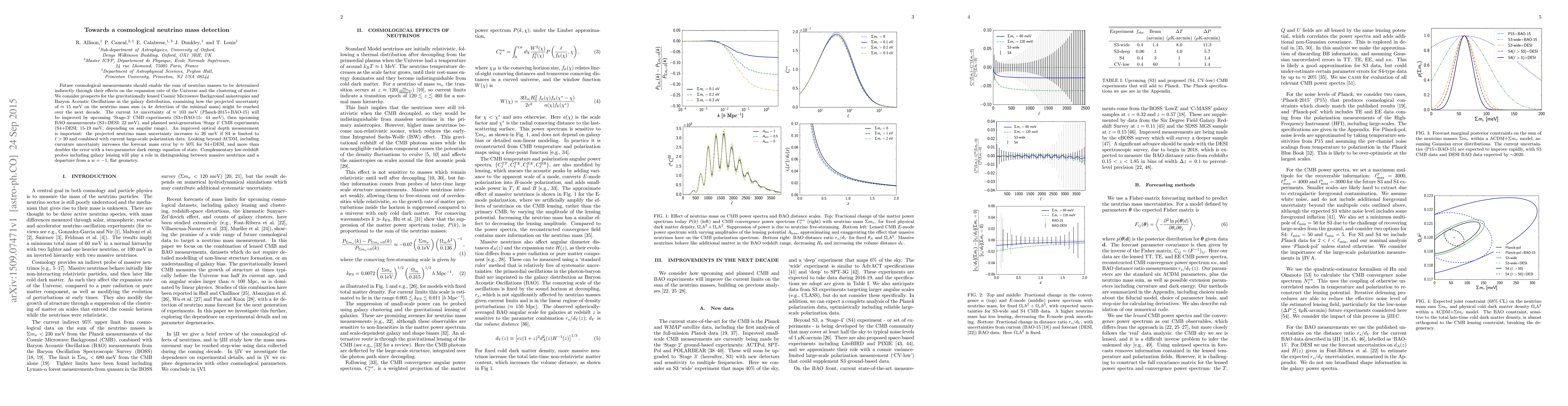 This paper explores the potential for future cosmological measurements to determine the sum of neutrino masses through their influence on the Universe's expansion rate and matter clustering. Upcoming 'Stage-3' and 'Stage-4' CMB experiments, combined with Baryon Acoustic Oscillation measurements, aim to reduce the current uncertainty from 103 meV to approximately 15 meV, enabling a 4σ detection of the minimal neutrino mass sum.