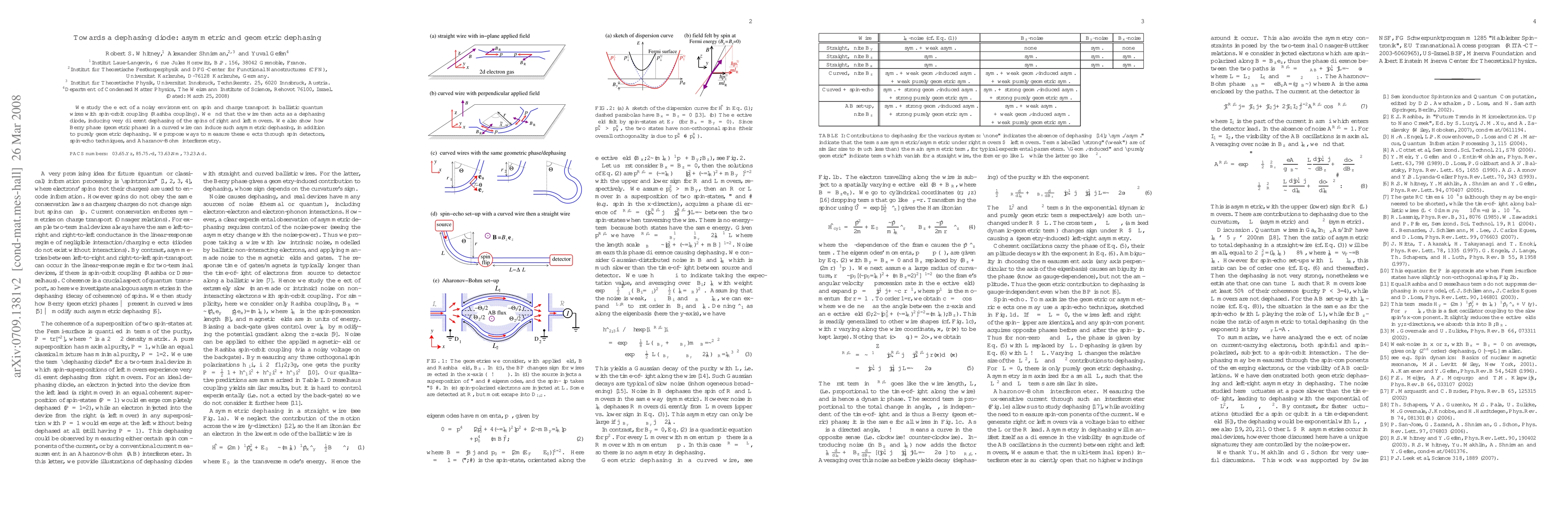This paper explores how a noisy environment impacts spin and charge transport in quantum wires with Rashba coupling, revealing that the wire acts as a "dephasing diode" with distinct dephasing effects for right and left movers. It also demonstrates that geometric phase in a curved wire can induce asymmetric dephasing, proposing measurement techniques like spin detectors and Aharanov-Bohm interferometry.