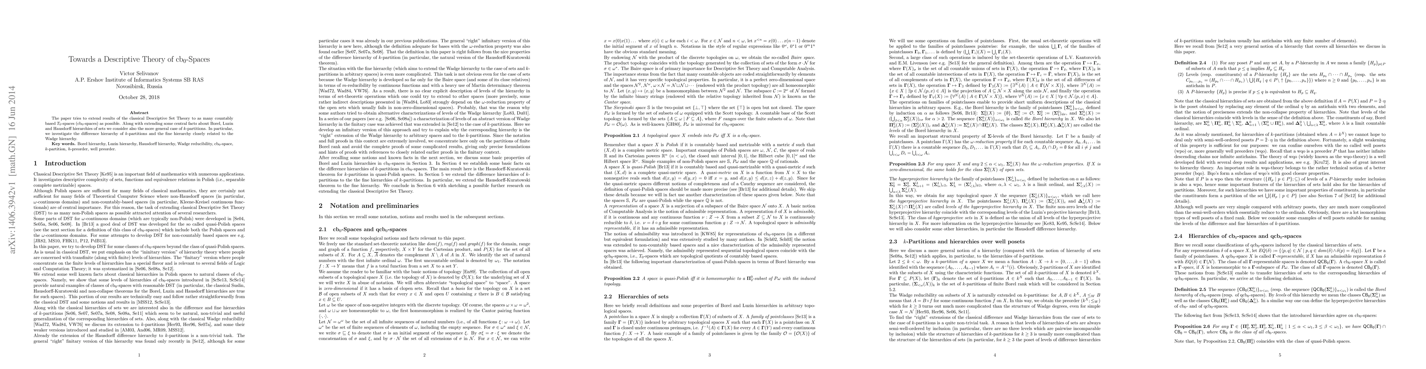 This paper extends classical Descriptive Set Theory results to countably based T_0-spaces (cb_0-spaces), focusing on Borel, Luzin, and Hausdorff hierarchies, and explores the difference hierarchy of k-partitions and the fine hierarchy related to the Wadge hierarchy.