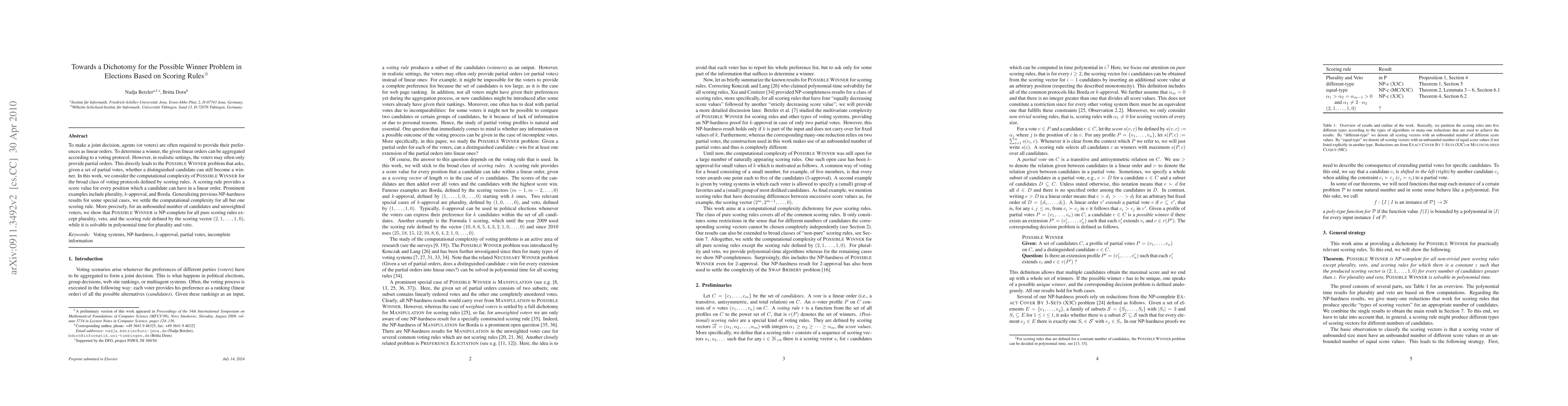 This paper investigates the computational complexity of the Possible Winner problem under various scoring rules in elections, showing that it is NP-complete for most scoring rules except for plurality, veto, and a specific scoring vector, while the latter two can be solved in polynomial time.