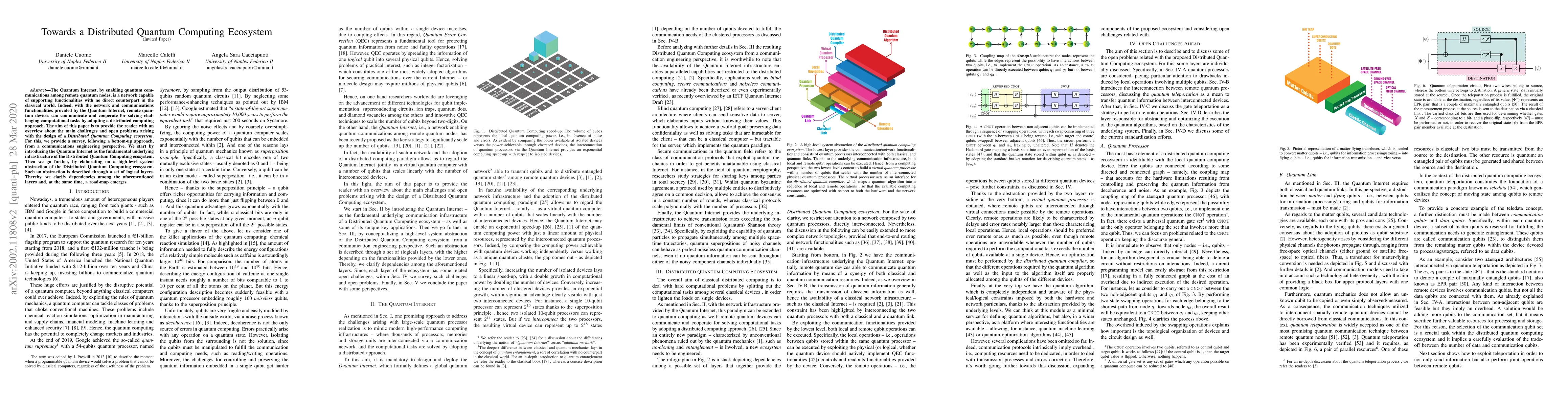 The Quantum Internet, by enabling quantum communications among remote quantum nodes, is a network capable of supporting functionalities with no direct counterpart in the classical world. Indeed, with the network and communications functionalities provided by the Quantum Internet, remote quantum devices can communicate and cooperate for solving challenging computational tasks by adopting a distributed computing approach. The aim of this paper is to provide the reader with an overview about the main challenges and open problems arising with the design of a Distributed Quantum Computing ecosystem. For this, we provide a survey, following a bottom-up approach, from a communications engineering perspective. We start by introducing the Quantum Internet as the fundamental underlying infrastructure of the Distributed Quantum Computing ecosystem. Then we go further, by elaborating on a high-level system abstraction of the Distributed Quantum Computing ecosystem. Such an abstraction is described through a set of logical layers. Thereby, we clarify dependencies among the aforementioned layers and, at the same time, a road-map emerges.