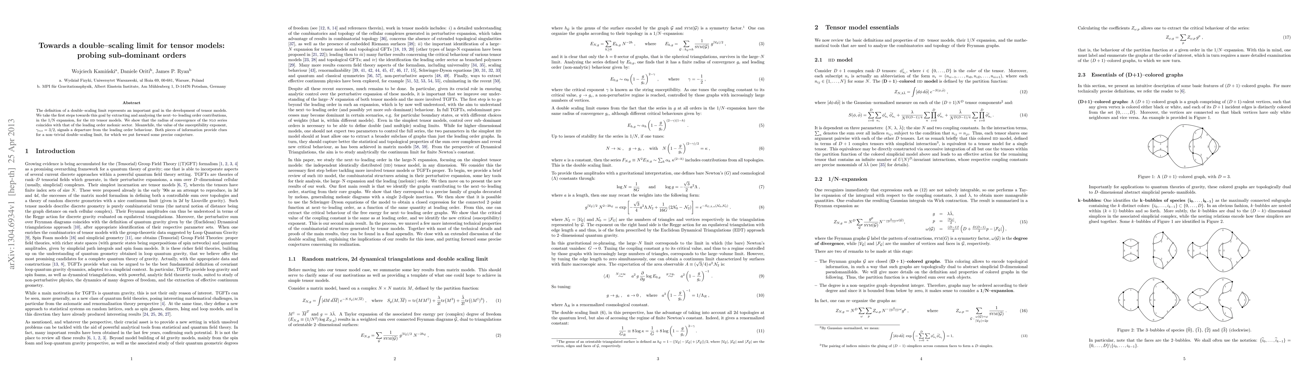 The definition of a double-scaling limit represents an important goal in the development of tensor models. We take the first steps towards this goal by extracting and analysing the next-to-leading order contributions, in the 1/N expansion, for the IID tensor models. We show that the radius of convergence of the NLO series coincides with that of the leading order melonic sector. Meanwhile, the value of the susceptibility exponent at NLO is 3/2, signaling a departure from the leading order behaviour. Both pieces of information provide clues for a non-trivial double-scaling limit, for which we put forward some precise conjecture.