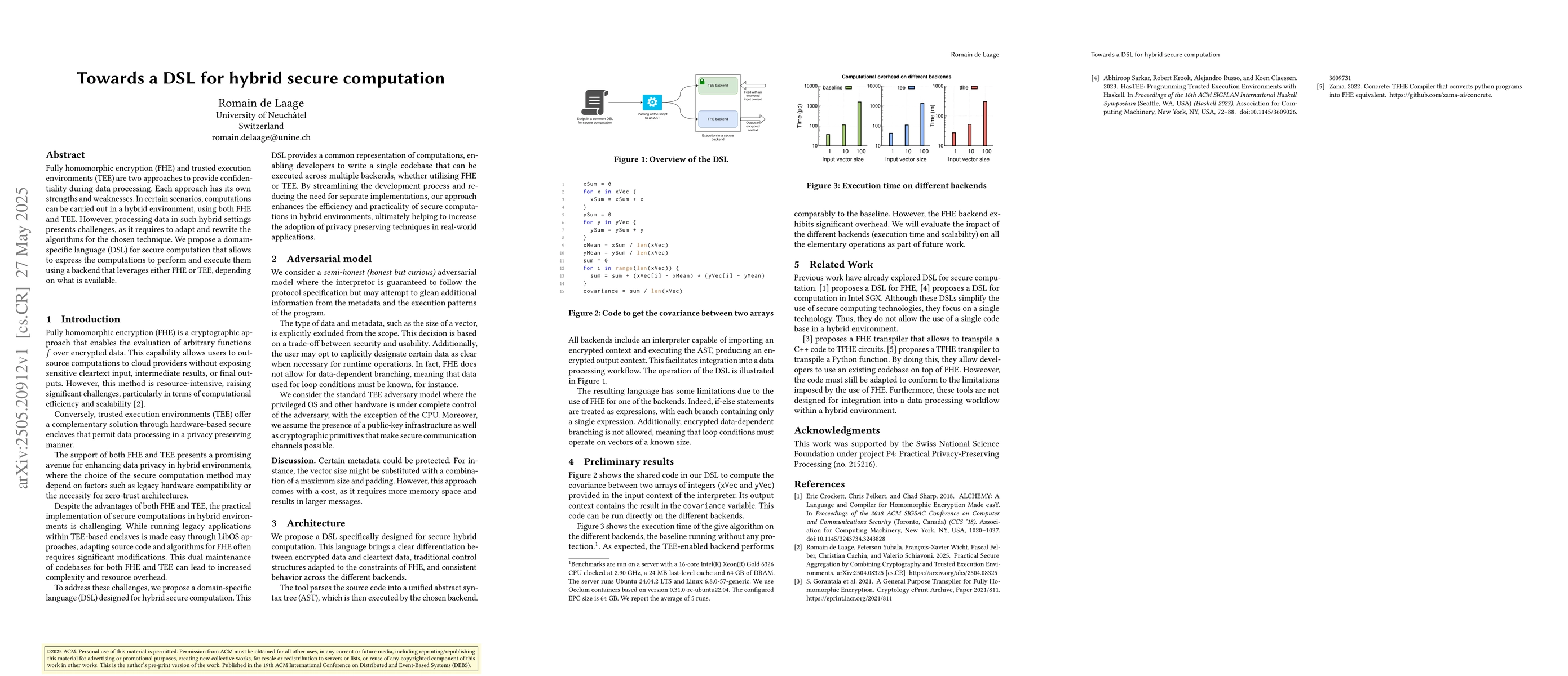 The development of a DSL facilitating hybrid secure computation using FHE and TEE.