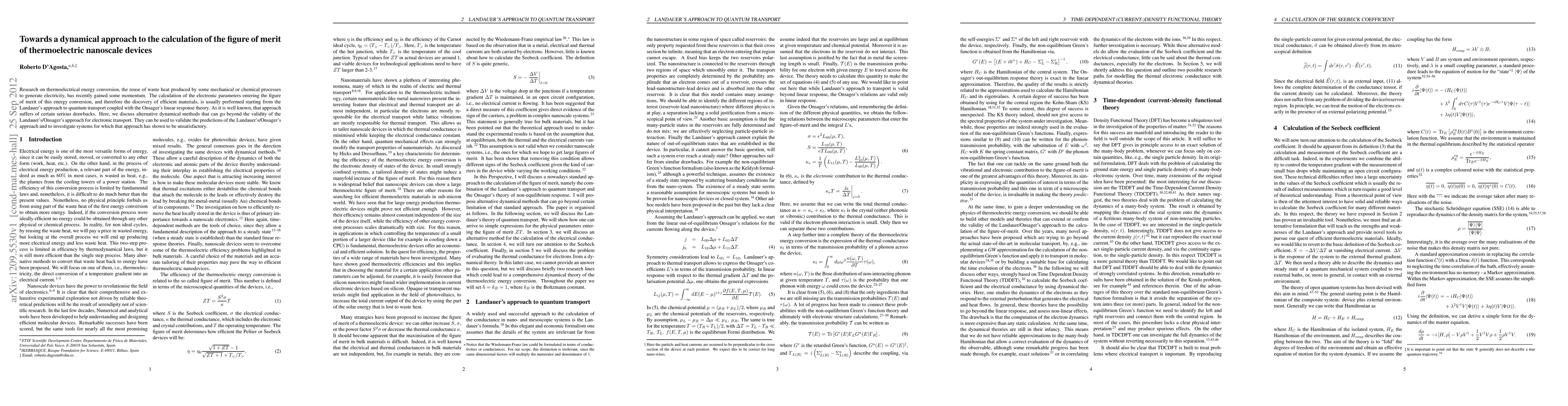 Research on thermoelectrical energy conversion, the reuse of waste heat produced by some mechanical or chemical processes to generate electricity, has recently gained some momentum. The calculation of the electronic parameters entering the figure of merit of this energy conversion, and therefore the discovery of efficient materials, is usually performed starting from the Landauer's approach to quantum transport coupled with the Onsager's linear response theory. As it is well known, that approach suffers of certain serious drawbacks. Here, we discuss alternative dynamical methods that can go beyond the validity of the Landauer's/Onsager's approach for electronic transport. They can be used to validate the predictions of the Landauer's/Onsager's approach and to investigate systems for which that approach has shown to be unsatisfactory.