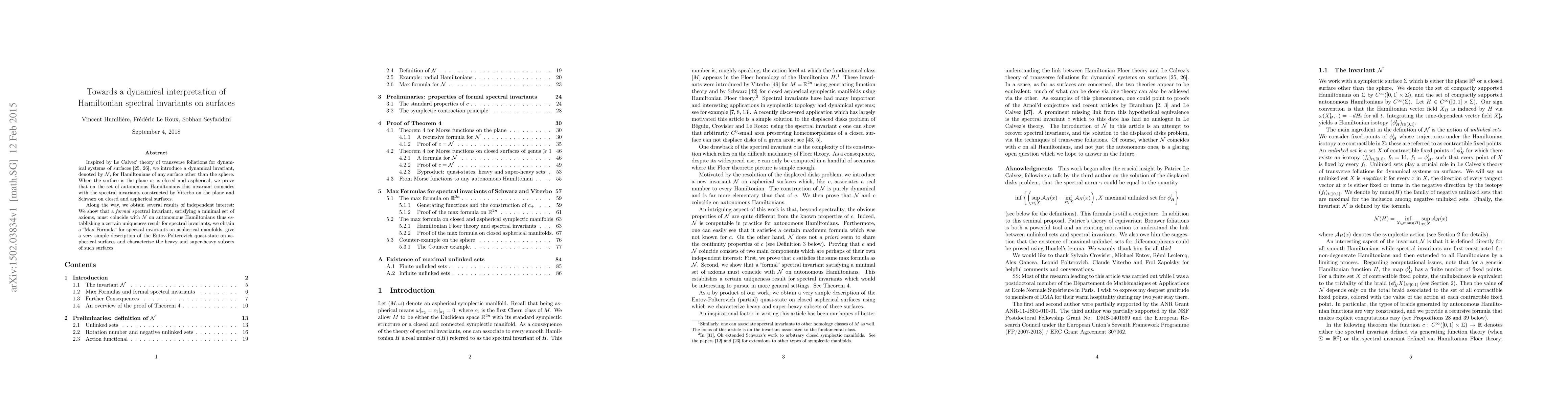 This paper introduces a new dynamical invariant N for Hamiltonians on surfaces, proving its equivalence with existing spectral invariants on the plane and closed aspherical surfaces. It also establishes uniqueness for spectral invariants, provides a "Max Formula" for aspherical manifolds, and characterizes heavy and super-heavy subsets on such surfaces.