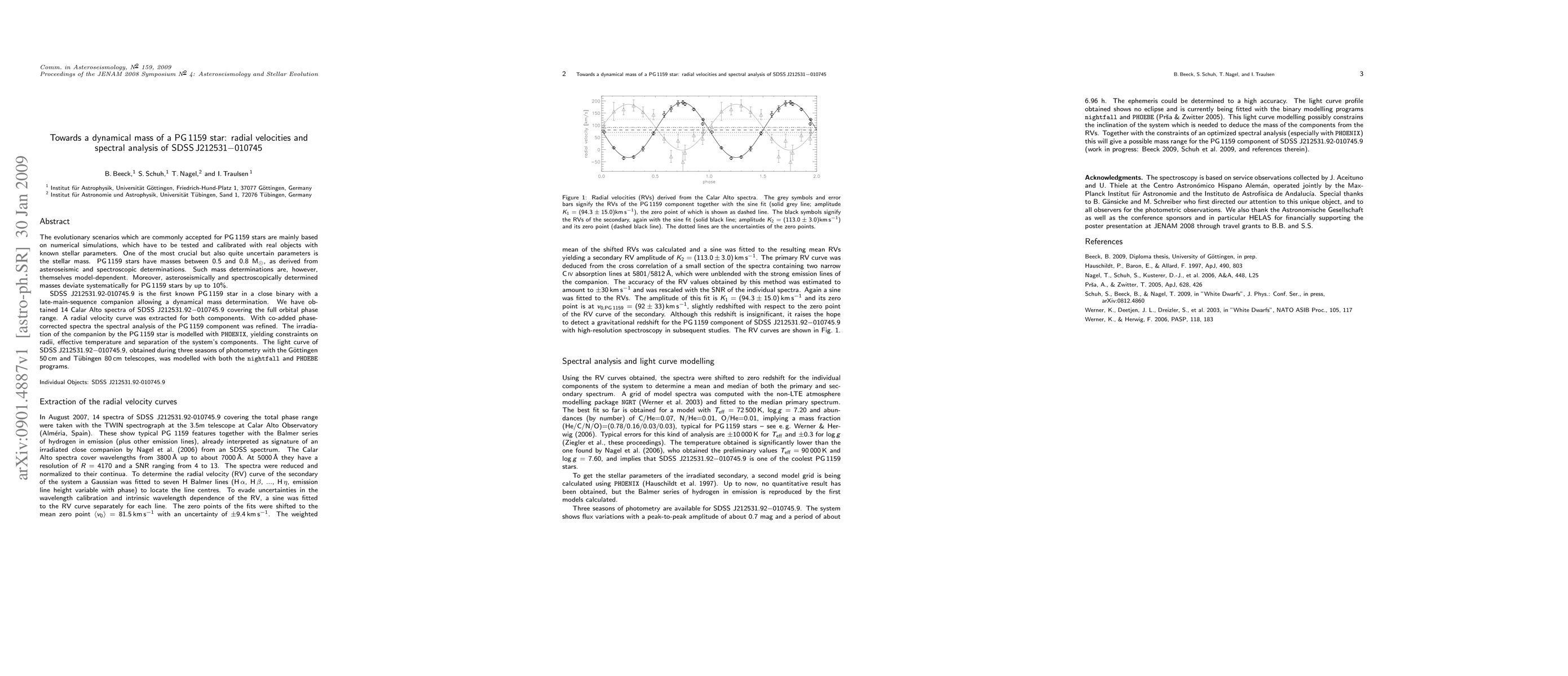 The evolutionary scenarios which are commonly accepted for PG 1159 stars are mainly based on numerical simulations, which have to be tested and calibrated with real objects with known stellar parameters. One of the most crucial but also quite uncertain parameters is the stellar mass. PG 1159 stars have masses between 0.5 and 0.8 M_sun, as derived from asteroseismic and spectroscopic determinations. Such mass determinations are, however, themselves model-dependent. Moreover, asteroseismically and spectroscopically determined masses deviate systematically for PG 1159 stars by up to 10%. SDSS J212531.92-010745.9 is the first known PG 1159 star in a close binary with a late-main-sequence companion allowing a dynamical mass determination. We have obtained 14 Calar Alto spectra of SDSS J212531.92-010745.9 covering the full orbital phase range. A radial velocity curve was extracted for both components. With co-added phase-corrected spectra the spectral analysis of the PG 1159 component was refined. The irradiation of the companion by the PG 1159 star is modelled with PHOENIX, yielding constraints on radii, effective temperature and separation of the system's components. The light curve of SDSS J212531.92-010745.9, obtained during three seasons of photometry with the Goettingen 50 cm and Tuebingen 80 cm telescopes, was modelled with both the NIGHTFALL and PHOEBE programs.