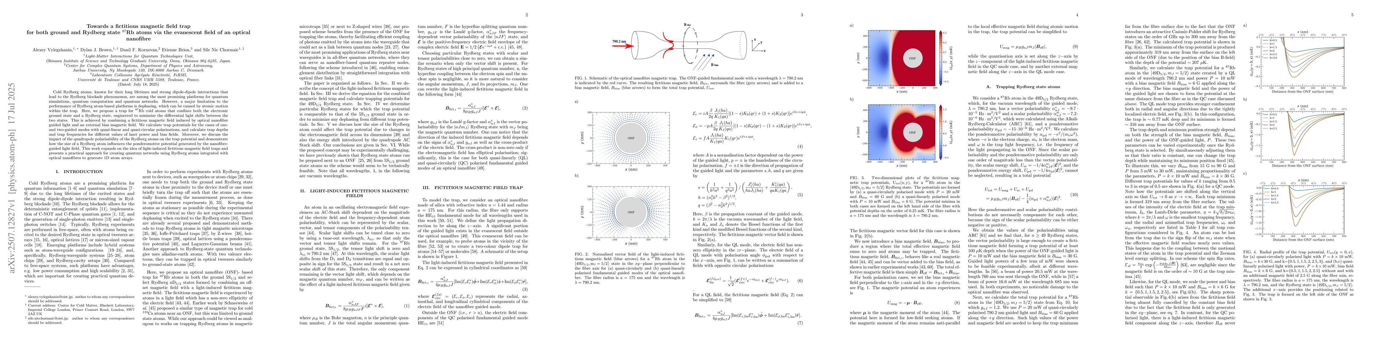 The research proposes a trap for $^{87}$Rb atoms using a fictitious magnetic field induced by optical nanofibre guided light combined with an external bias magnetic field, aiming to confine both the electronic ground state and a Rydberg state with minimal differential light shifts.