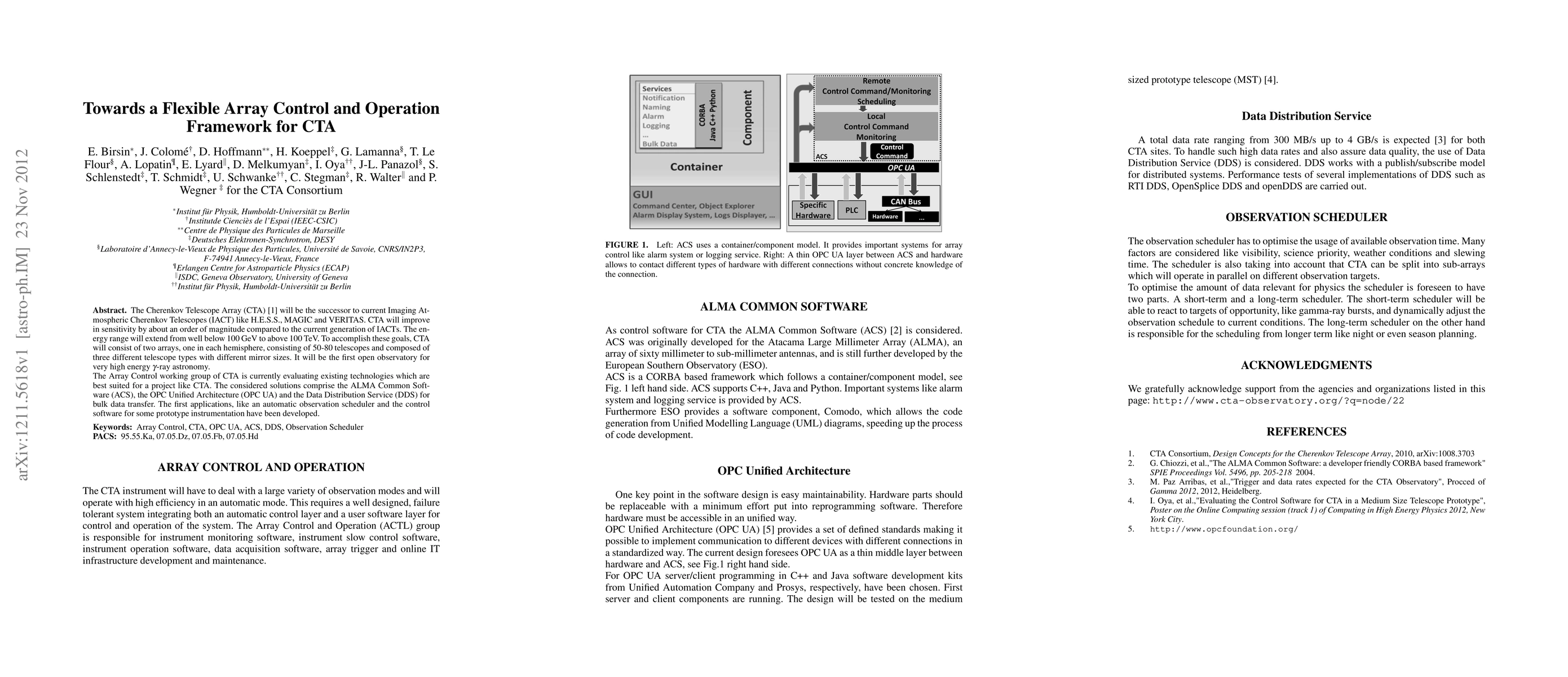 The Cherenkov Telescope Array (CTA) \cite{CTA:2010} will be the successor to current Imaging Atmospheric Cherenkov Telescopes (IACT) like H.E.S.S., MAGIC and VERITAS. CTA will improve in sensitivity by about an order of magnitude compared to the current generation of IACTs. The energy range will extend from well below 100 GeV to above 100 TeV. To accomplish these goals, CTA will consist of two arrays, one in each hemisphere, consisting of 50-80 telescopes and composed of three different telescope types with different mirror sizes. It will be the first open observatory for very high energy $\gamma$-ray astronomy. The Array Control working group of CTA is currently evaluating existing technologies which are best suited for a project like CTA. The considered solutions comprise the ALMA Common Software (ACS), the OPC Unified Architecture (OPC UA) and the Data Distribution Service (DDS) for bulk data transfer. The first applications, like an automatic observation scheduler and the control software for some prototype instrumentation have been developed.