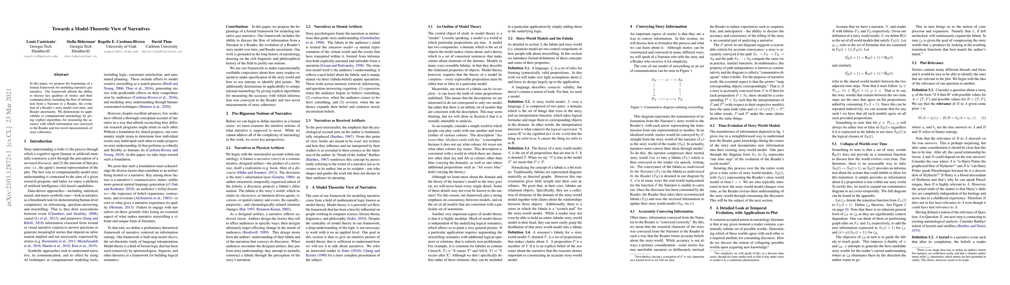 In this paper, we propose the beginnings of a formal framework for modeling narrative \textit{qua} narrative. Our framework affords the ability to discuss key qualities of stories and their communication, including the flow of information from a Narrator to a Reader, the evolution of a Reader's story model over time, and Reader uncertainty. We demonstrate its applicability to computational narratology by giving explicit algorithms for measuring the accuracy with which information was conveyed to the Reader and two novel measurements of story coherence.