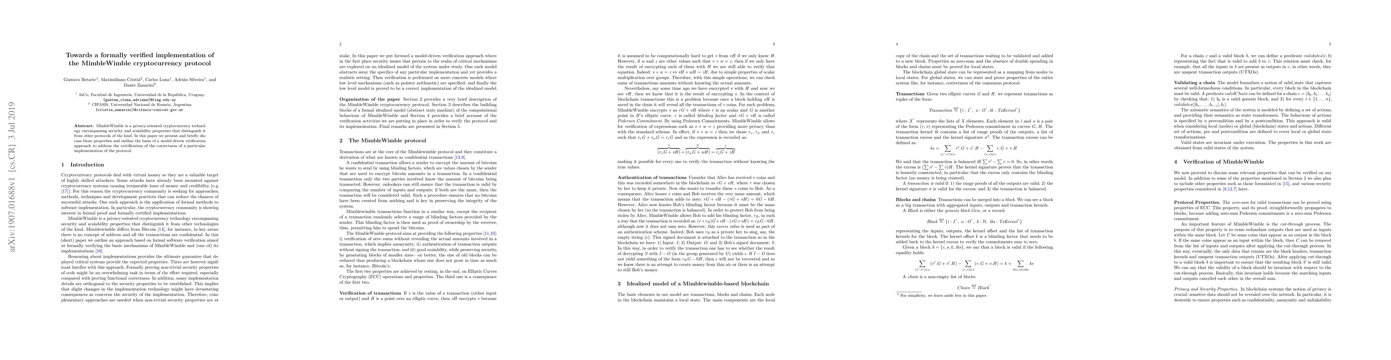 MimbleWimble is a privacy-oriented cryptocurrency technology encompassing security and scalability properties that distinguish it from other protocols of the kind. In this paper we present and briefly discuss those properties and outline the basis of a model-driven verification approach to address the certification of the correctness of a particular implementation of the protocol.