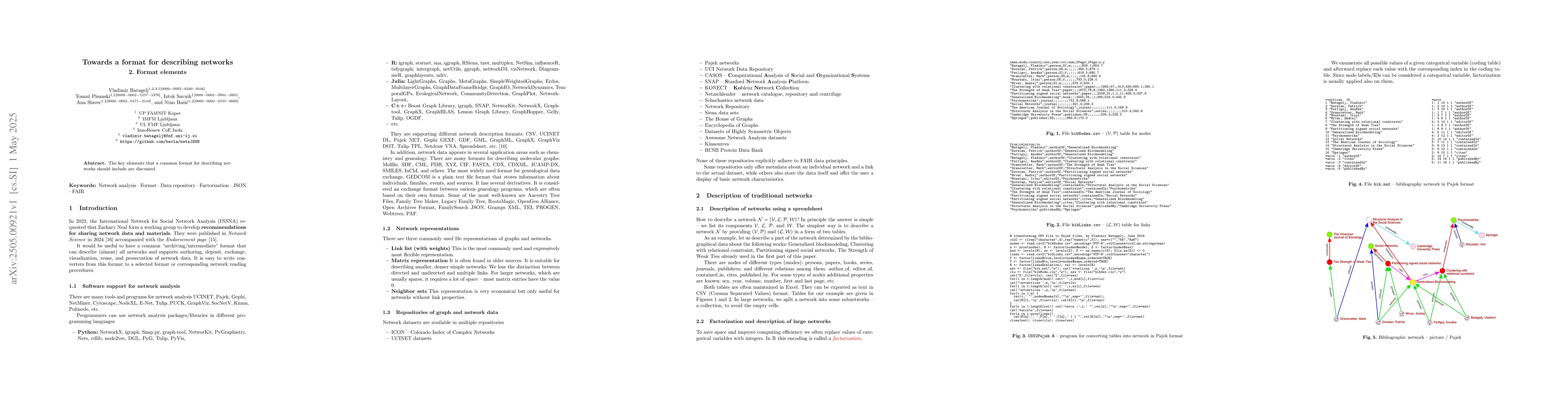 The paper discusses elements for a common format in describing networks, focusing on the inclusion of key elements and providing examples of their implementation.