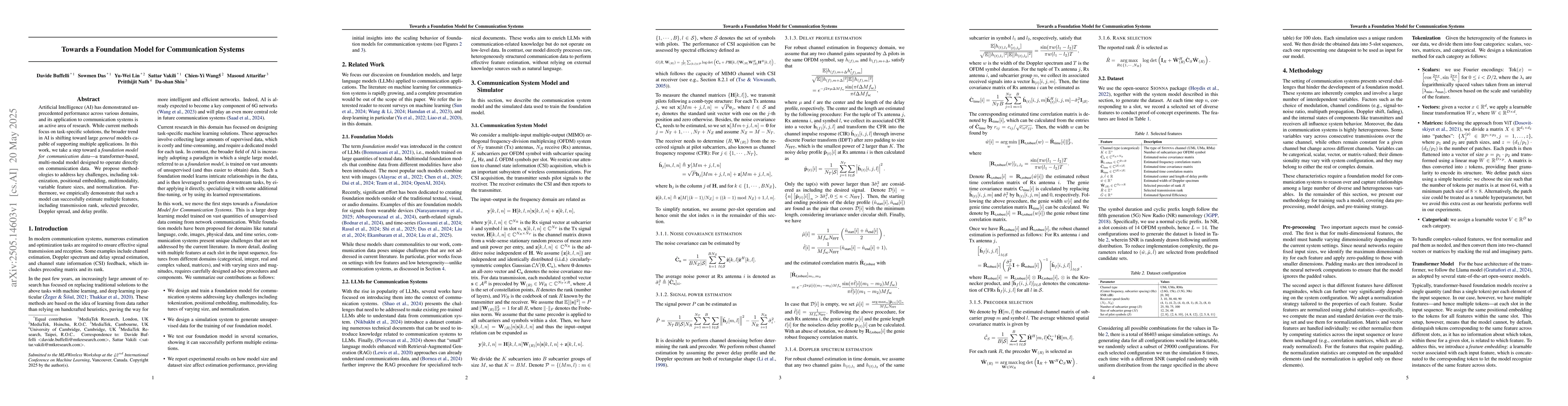 This work distinguishes itself by focusing on a foundation model for communication systems, rather than task-specific solutions, paving the way for more versatile AI applications in communications.