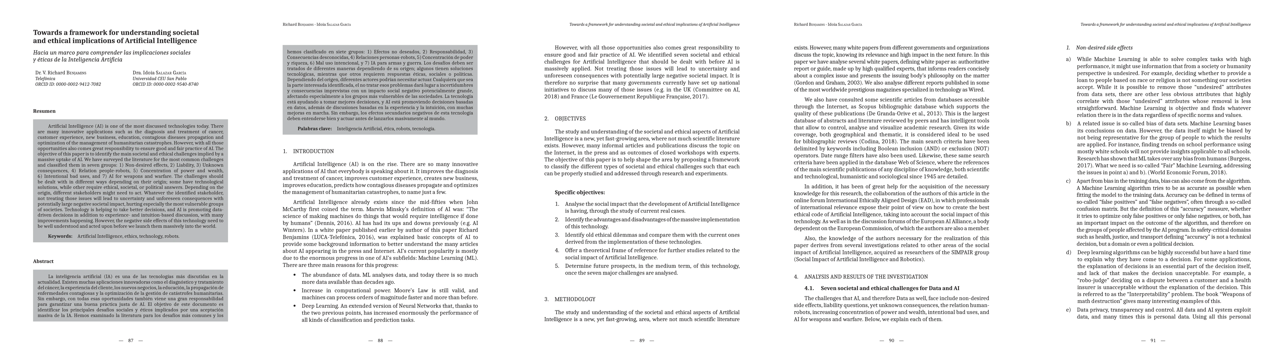Artificial Intelligence (AI) is one of the most discussed technologies today. There are many innovative applications such as the diagnosis and treatment of cancer, customer experience, new business, education, contagious diseases propagation and optimization of the management of humanitarian catastrophes. However, with all those opportunities also comes great responsibility to ensure good and fair practice of AI. The objective of this paper is to identify the main societal and ethical challenges implied by a massive uptake of AI. We have surveyed the literature for the most common challenges and classified them in seven groups: 1) Non-desired effects, 2) Liability, 3) Unknown consequences, 4) Relation people-robots, 5) Concentration of power and wealth, 6) Intentional bad uses, and 7) AI for weapons and warfare. The challenges should be dealt with in different ways depending on their origin; some have technological solutions, while others require ethical, societal, or political answers. Depending on the origin, different stakeholders might need to act. Whatever the identified stakeholder, not treating those issues will lead to uncertainty and unforeseen consequences with potentially large negative societal impact, hurting especially the most vulnerable groups of societies. Technology is helping to take better decisions, and AI is promoting data-driven decisions in addition to experience- and intuition-based discussion, with many improvements happening. However, the negative side effects of this technology need to be well understood and acted upon before we launch them massively into the world.