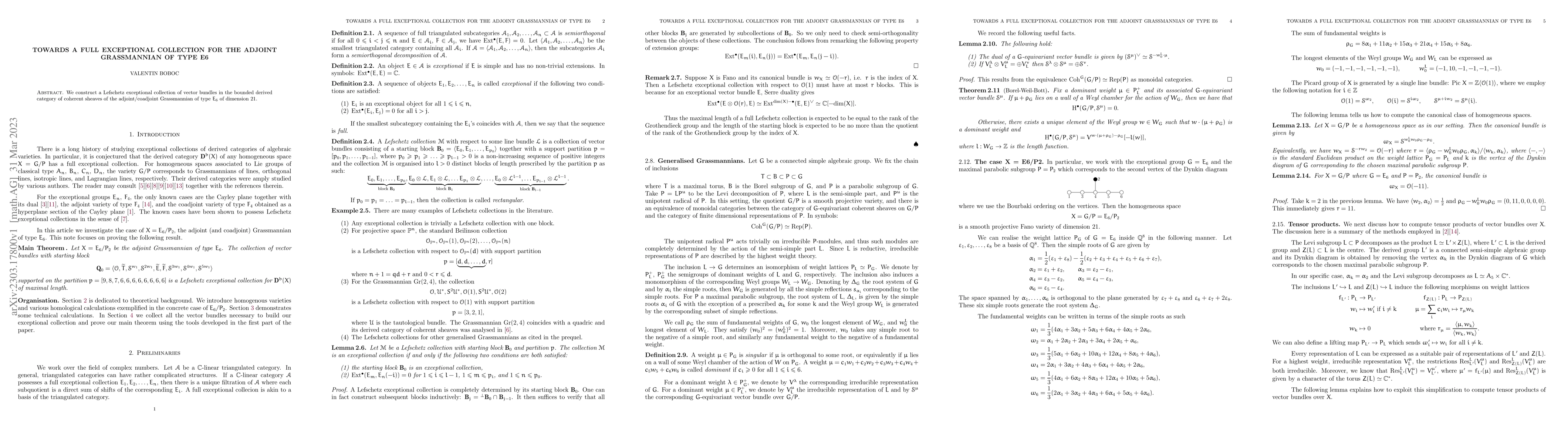 Summary: This paper constructs a Lefschetz exceptional collection of vector bundles for the adjoint Grassmannian of type $E_6$, providing a comprehensive framework in the bounded derived category of coherent sheaves. This collection aids in understanding the structure of the Grassmannian.