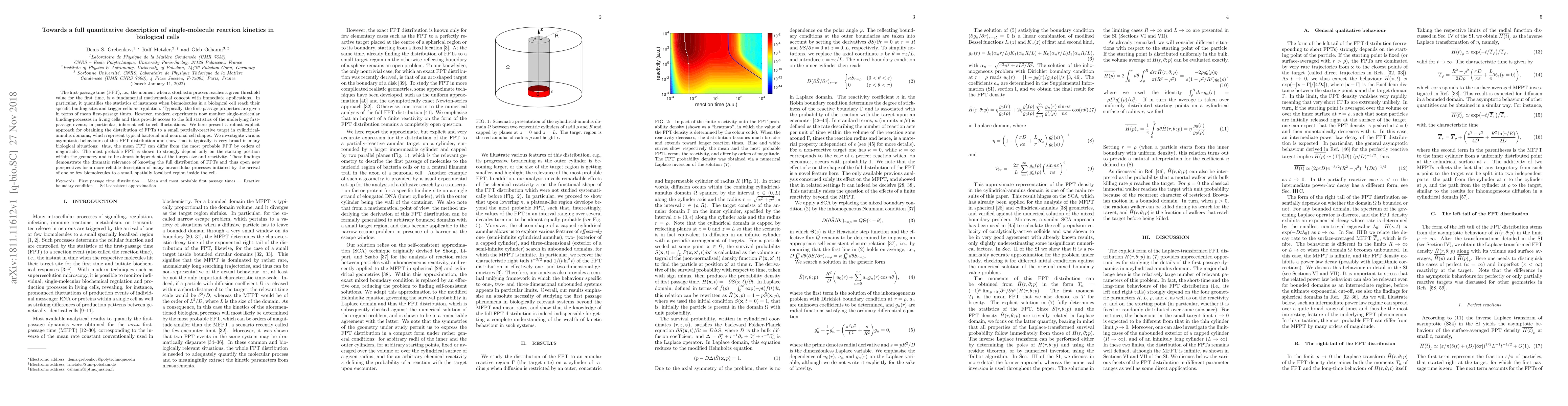 The first-passage time (FPT), i.e., the moment when a stochastic process reaches a given threshold value for the first time, is a fundamental mathematical concept with immediate applications. In particular, it quantifies the statistics of instances when biomolecules in a biological cell reach their specific binding sites and trigger cellular regulation. Typically, the first-passage properties are given in terms of mean first-passage times. However, modern experiments now monitor single-molecular binding-processes in living cells and thus provide access to the full statistics of the underlying first-passage events, in particular, inherent cell-to-cell fluctuations. We here present a robust explicit approach for obtaining the distribution of FPTs to a small partially-reactive target in cylindrical-annulus domains, which represent typical bacterial and neuronal cell shapes. We investigate various asymptotic behaviours of this FPT distribution and show that it typically is very broad in many biological situations: thus, the mean FPT can differ from the most probable FPT by orders of magnitude. The most probable FPT is shown to strongly depend only on the starting position within the geometry and to be almost independent of the target size and reactivity. These findings demonstrate the dramatic relevance of knowing the full distribution of FPTs and thus open new perspectives for a more reliable description of many intracellular processes initiated by the arrival of one or few biomolecules to a small, spatially localised region inside the cell.